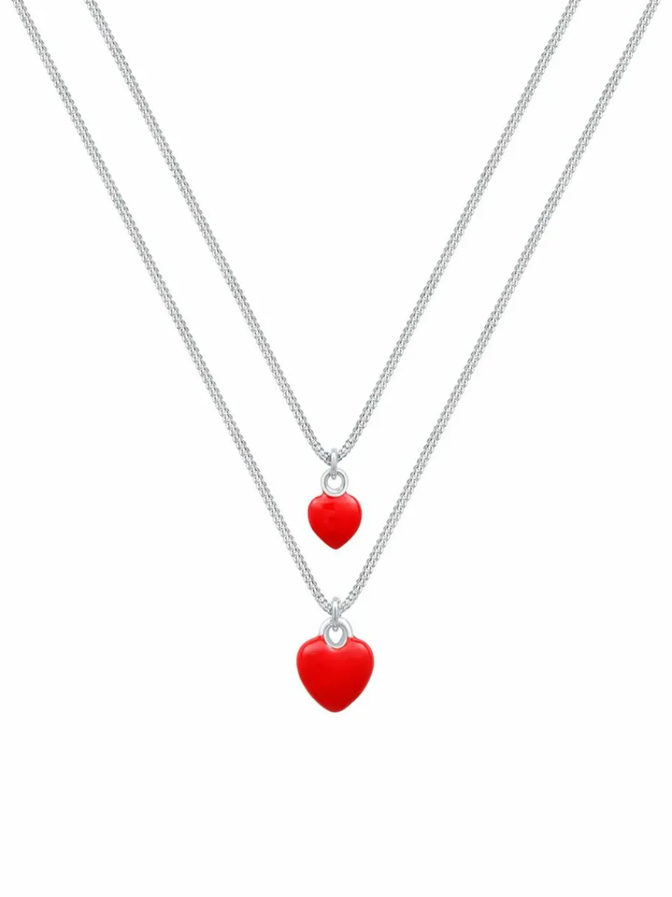 Wer diese Kette trägt, ist nie allein. Denn das Set besteht aus zwei Schmuckstücken und symbolisiert die Verbundenheit von Mutter und Tochter. Das modische Schmuckstück aus feinstem 925er Sterling Silber ist ein Must-Have für jede modische Mutter und ihre Tochter, die sich mit hochwertigen Materialien elegant in Szene setzen möchten. Das rote Herz wurde mit Emaille veredelt und soll die unendliche Liebe zwischen Mutter und Kind zeigen und verleiht jedem Outfit ein besonderes Strahlen. Auch als Geschenk eignet sich dieses trendige Schmuckstück hervorragend. Länge der Ketten: 45cm und 36cmZum Schutz der unserer Kleinsten empfehlen wir das Tragen von Schmuckstücken für Kinder unter 3 Jahren nur unter Aufsicht von Erwachsenen, da kleine Teile unter Umständen verschluckt werden könnten.