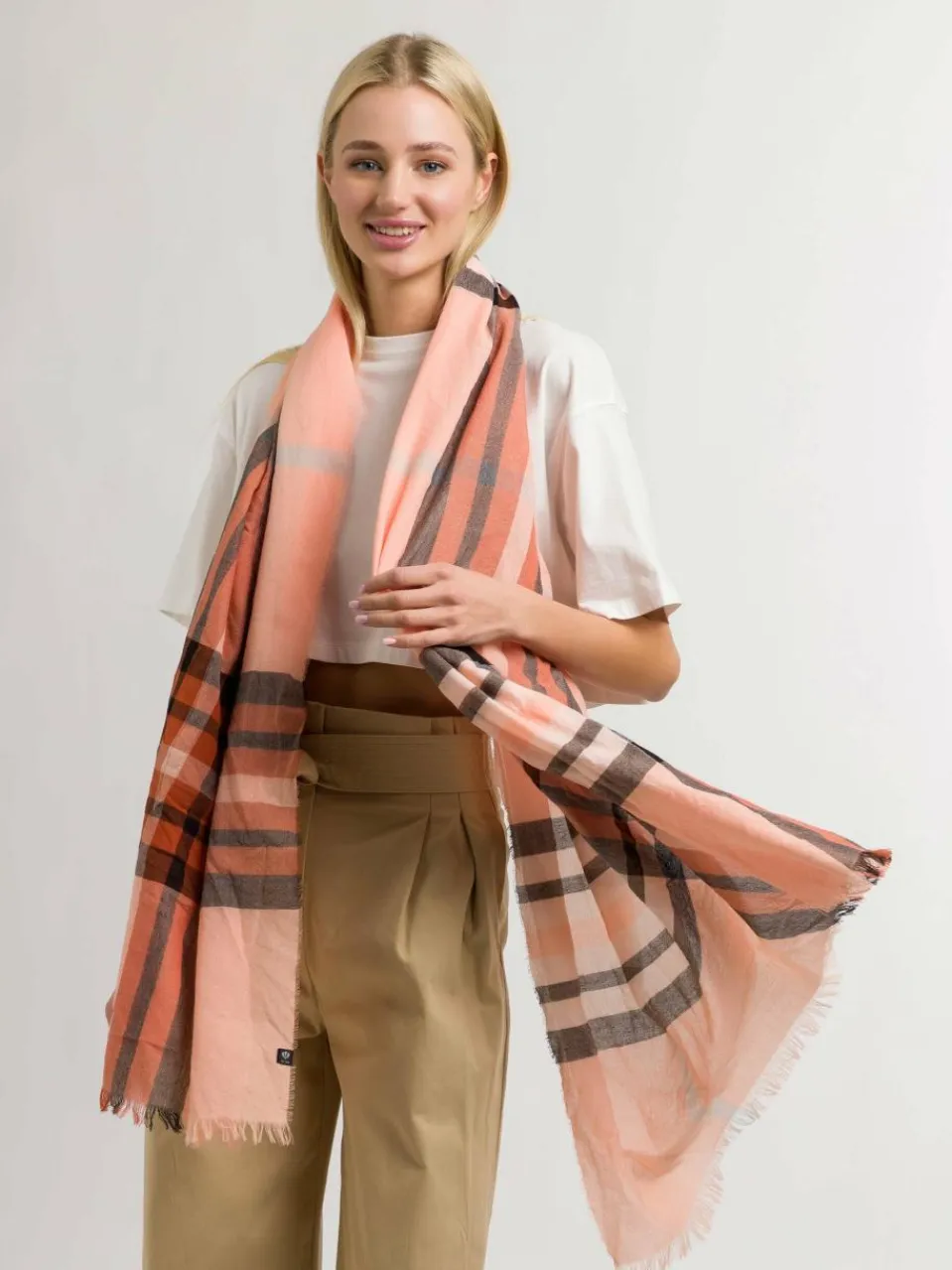 Artikelnummer: SKUqI00F6gRMO Kategorien: Accessoires, Damen, Schals & Tücher Schlagwörter: Aprikot Kariert, Damen, Fraas Marke: Fraas