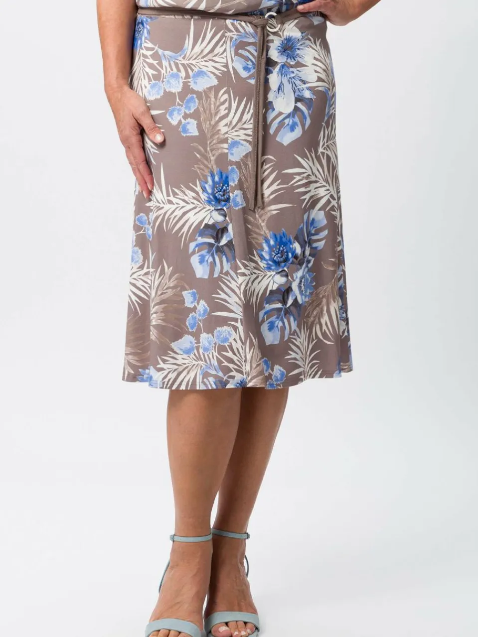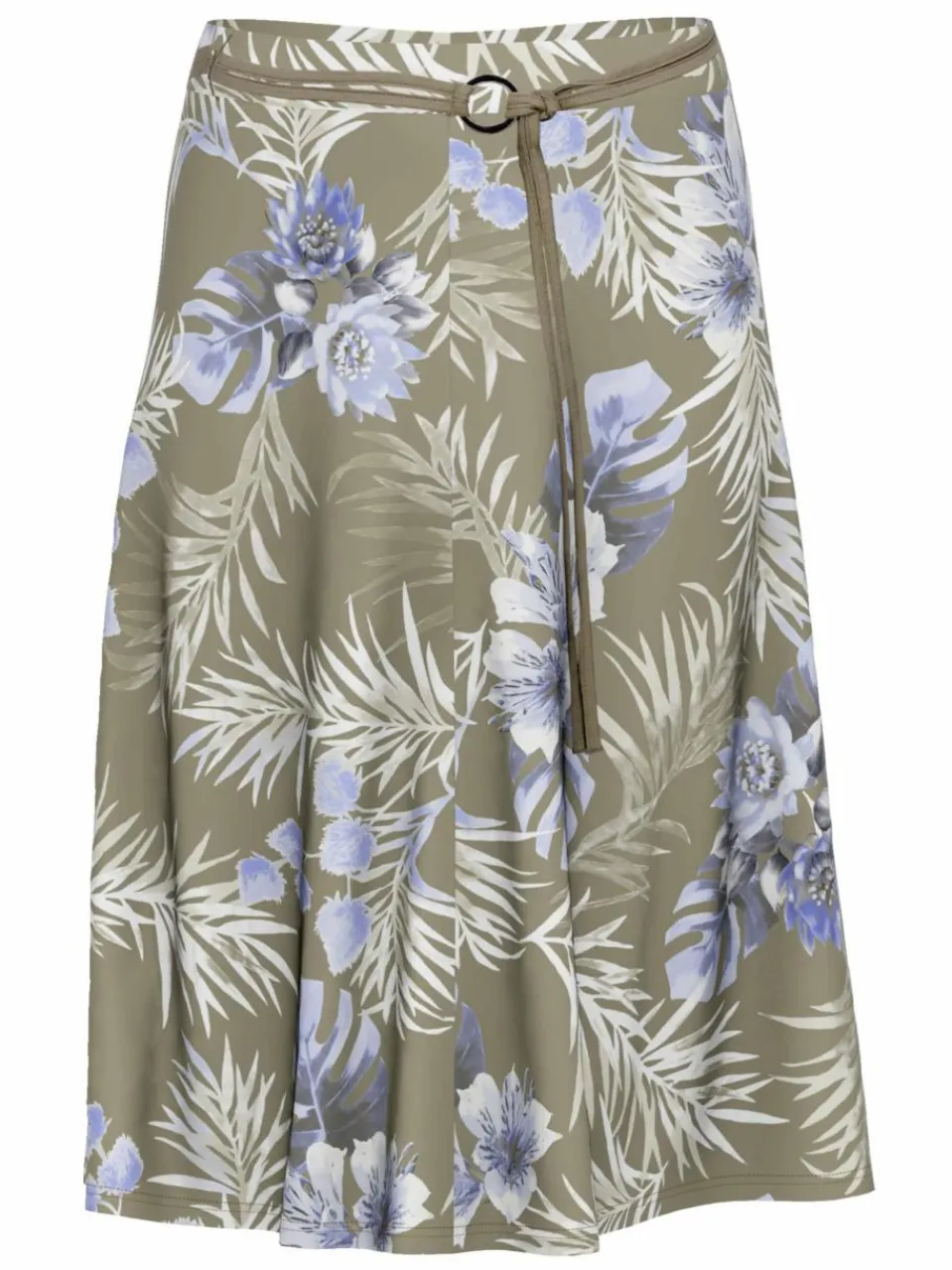 Erforschen Sie den Charme dieses femininen Damen Schlupfrocks, gefertigt aus weichem Viskose-Jersey mit einem harmonischen Flowerprint. Die figurfreundliche, ausgestellte Passform und der kniebedeckende Schnitt bieten stilvolle Eleganz für jede Gelegenheit. Mit dem komfortablen Bund und praktischen Bindegürtel vereint dieser Jerseyrock Modebewusstsein mit Alltagstauglichkeit.