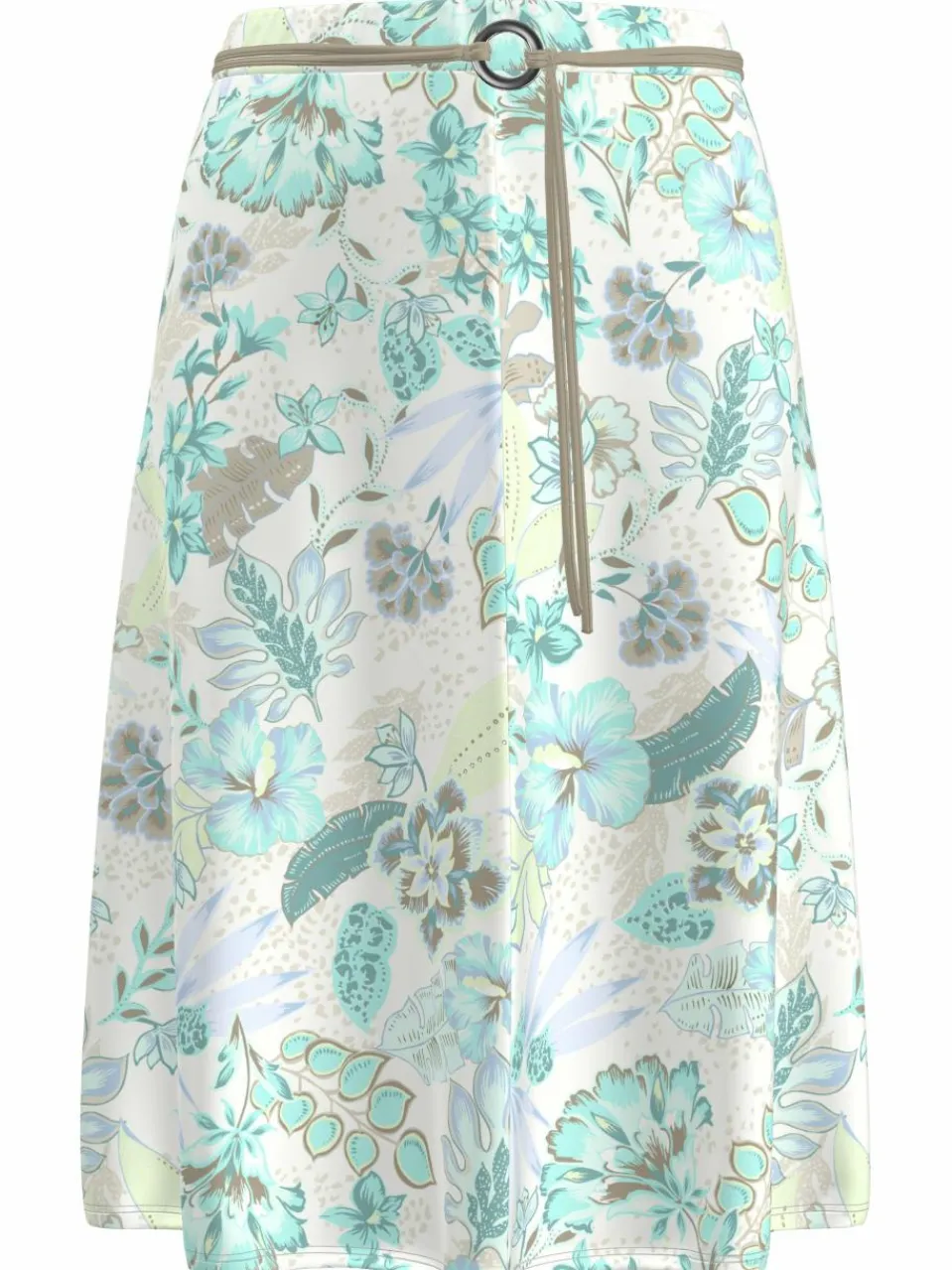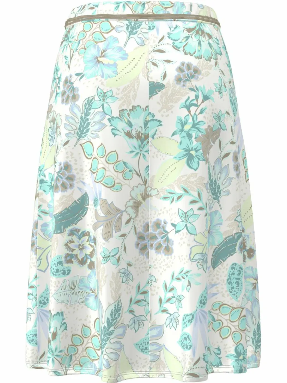 Druckrock in kniebedeckender Länge mit dekorativem und abnehmbaren Bindegürtel. Für guten Tragecomfort sorgt ein elastischer Taillenbund. Der Rock schwingt beim Gehen leicht mit und ist gefüttert.