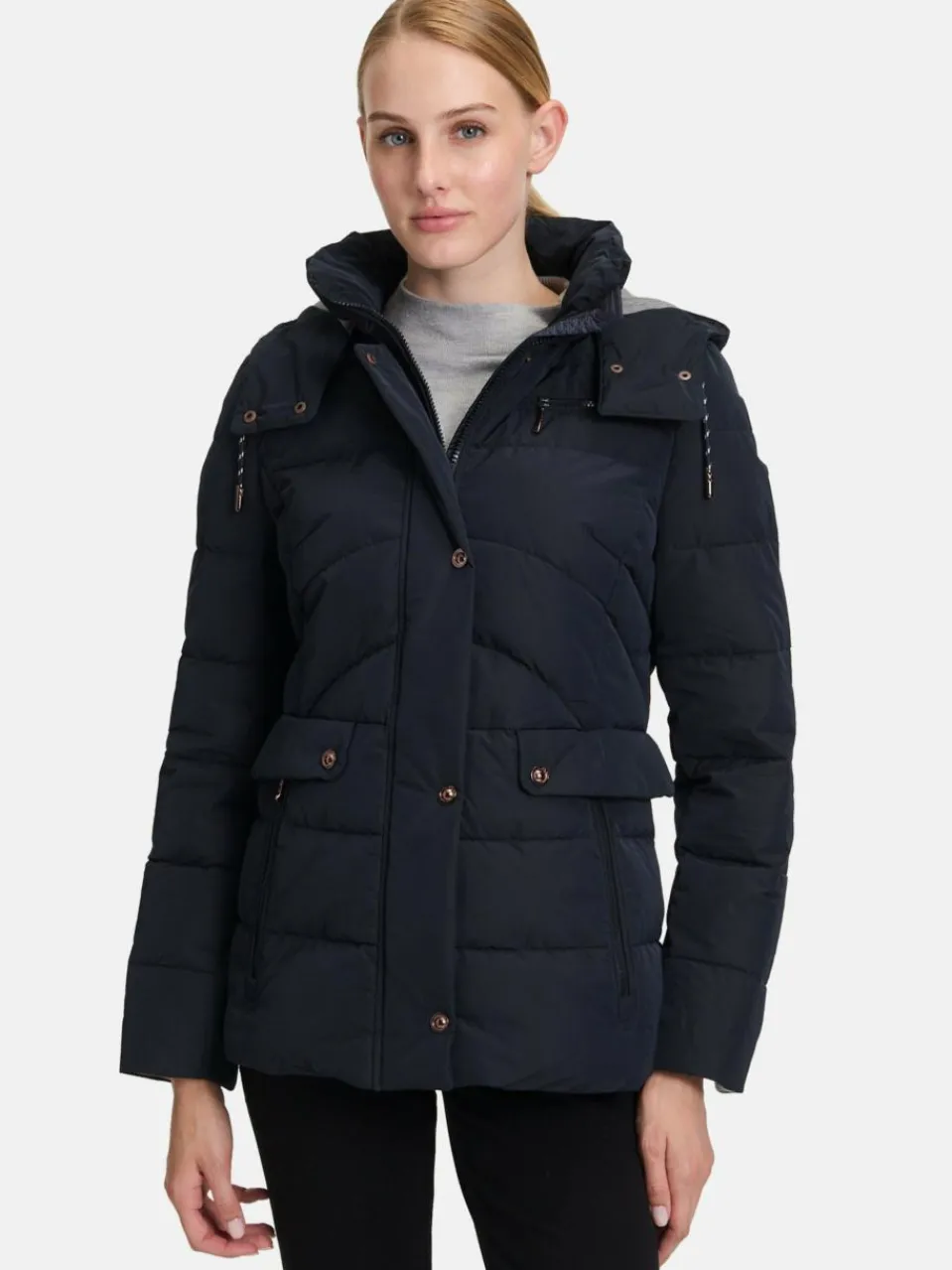 Ein absoluter Hingucker! Diese sportliche Steppjacke von Gil Bret aus modernem Shape-Memory lässt sich mit Reißverschluss und Druckknöpfen schließen Die leicht taillierte Silhouette sowie die abnehmbare Kapuze machen dieses Teil zum perfekten Begleiter im Alltag!