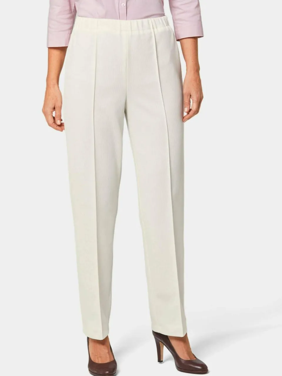 Rippenhose: Verwöhnen Sie sich Tag für Tag mit angenehmer Qualität. Das strapazierfähige Wirkmaterial ist weich, knitterarm und formstabil. Auch wenn Sie die Hose waschen müssen, ist sie dank ihrer schnelltrocknenden Eigenschaften ganz fix wieder einsatzbereit. Besonders figurfreundlich wirken die vorderen abgesteppten Biesen. Mit bequemem Schlupfbund – einfach anziehen und besten Tragekomfort genießen. Gerade Beinweite. Saumweite ca. 42 cm.