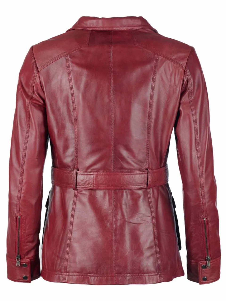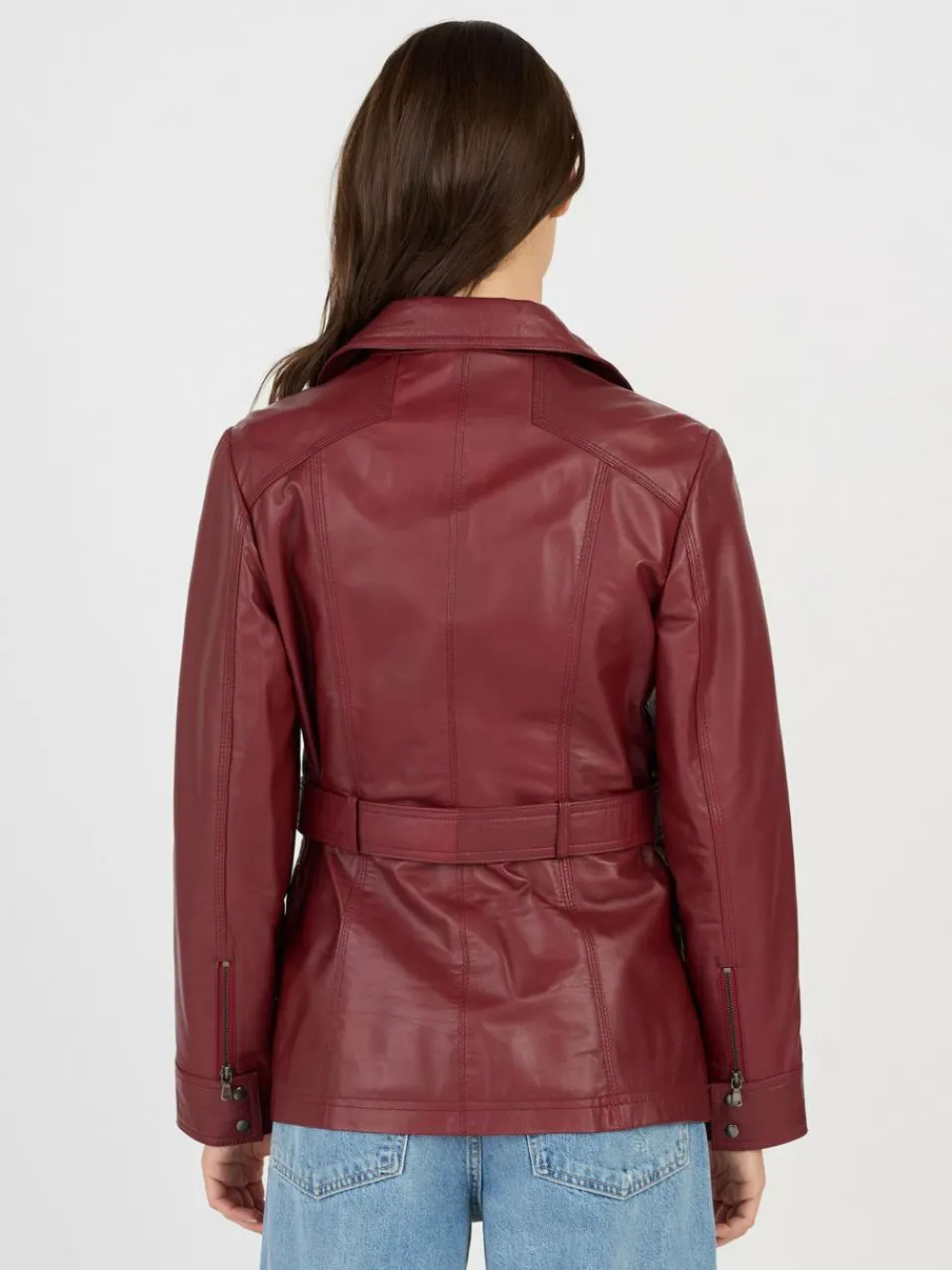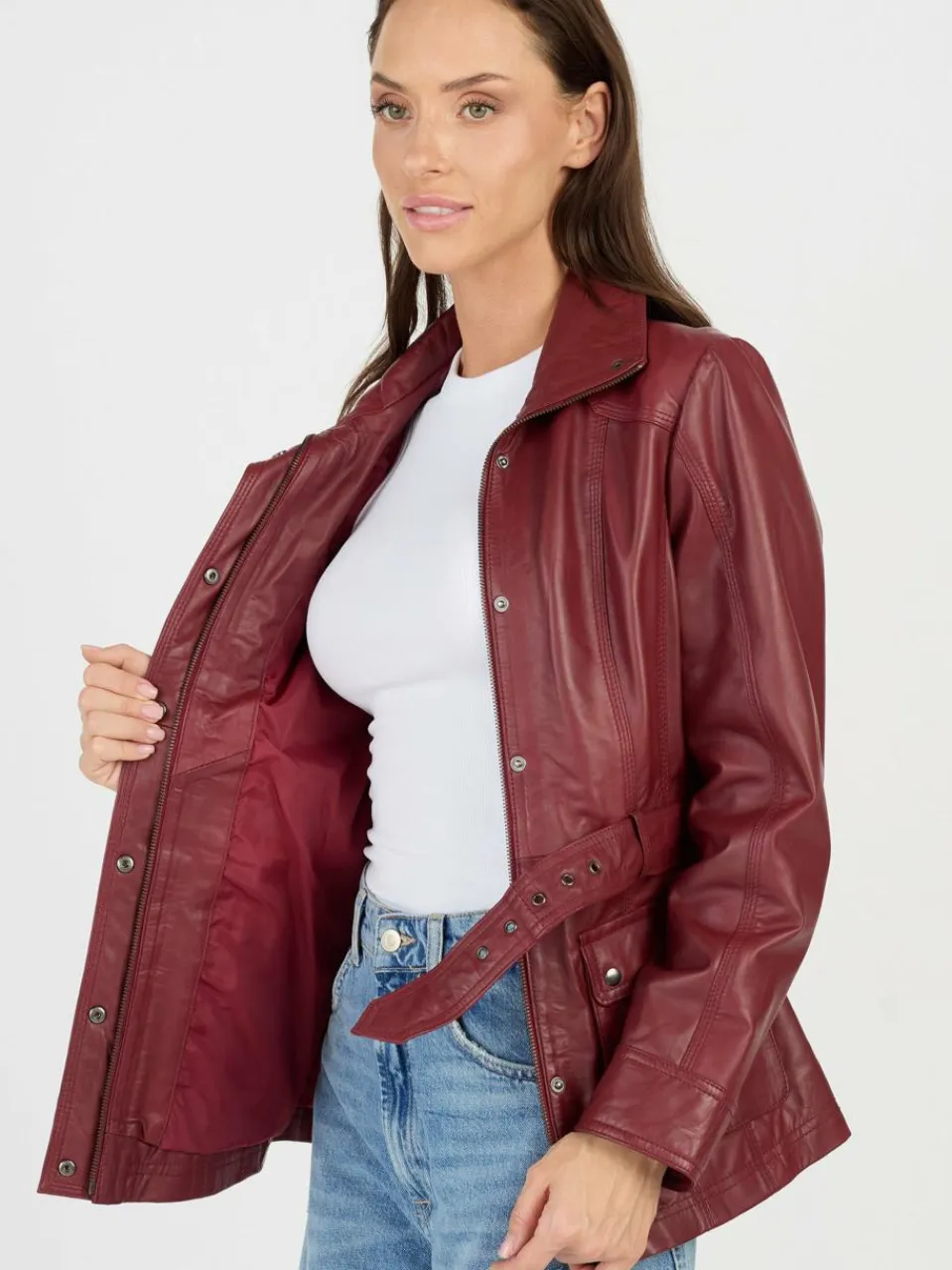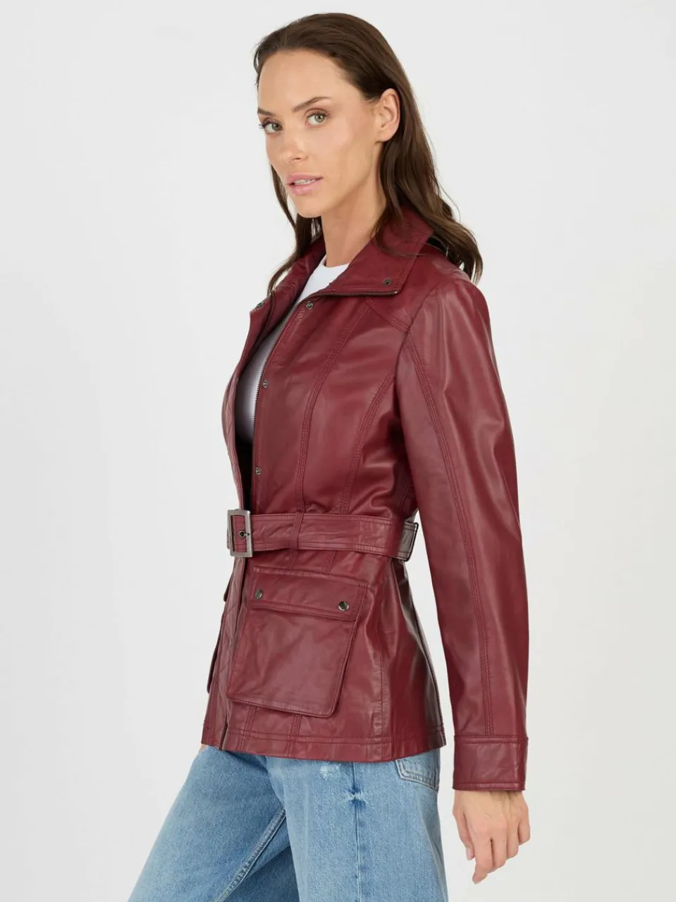 Diese trendige Lederjacke der Marke JCC wird mit einem verdecktem Reißverschluss geschlossen und verfügt über aufgesetze Druckknopftaschen. Ziernähte an Schultern sowie der markante Gürtelverschluss an der Taille setzen dezente Highlights. Der leicht taillierte Schnitt sorgt für eine feminine Silhouette und vielseitige Styling-Möglichkeiten, wodurch das Modell sowohl im Alltag als auch bei besonderen Anlässen eine perfekte Wahl darstellt.