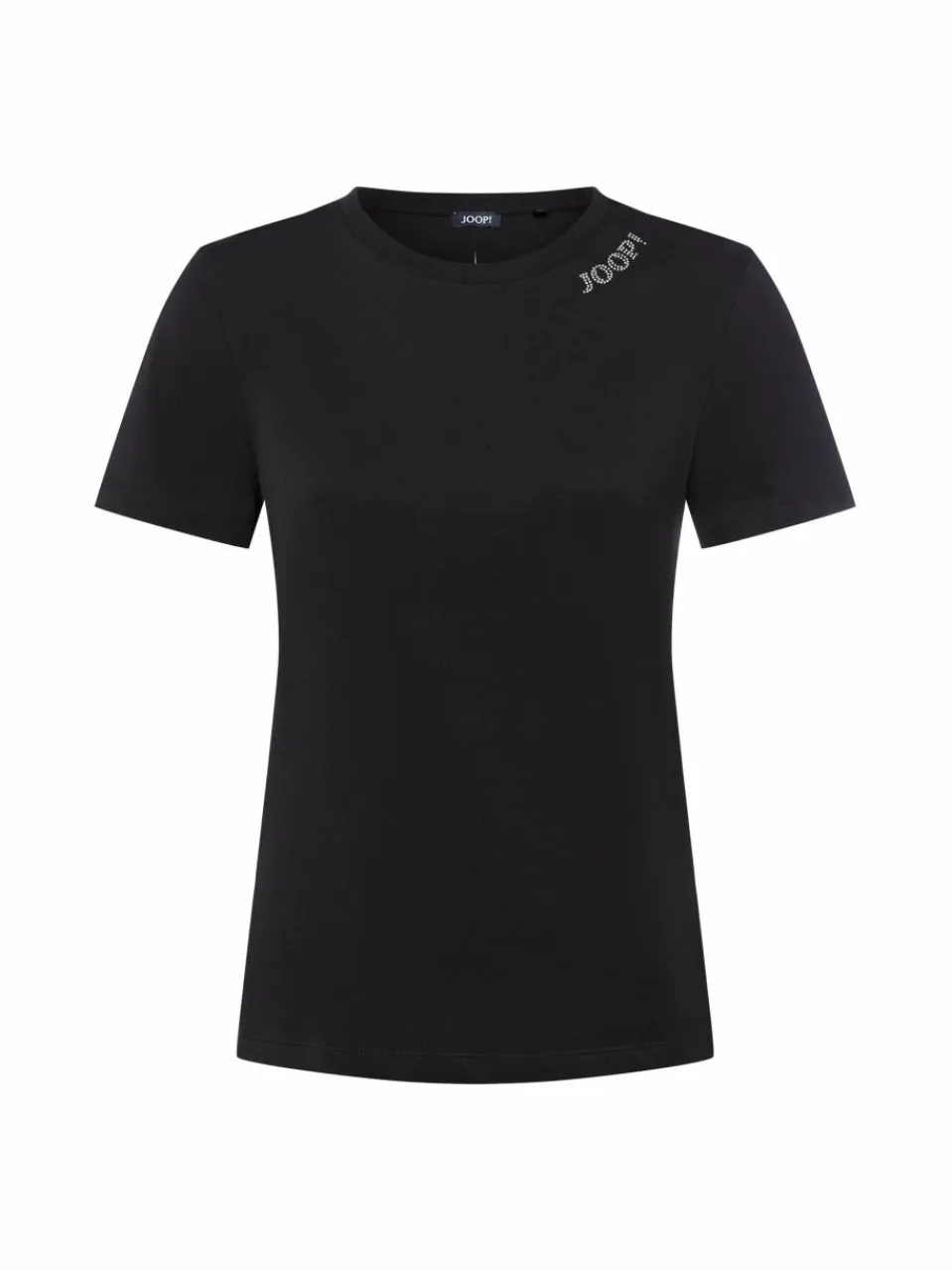 Der Label-Print aus funkelnden Strasssteinen lockert den zeitlosen Basic-Look des JOOP! T-Shirts Tori gekonnt auf.