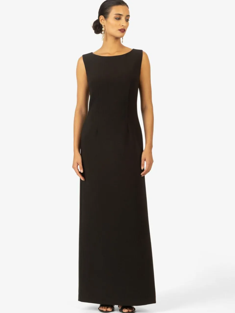 Dieses elegante Maxikleid besticht durch seine klare Silhouette und dezente Raffinesse. Der klassische Rundhalsausschnitt und die ärmellose Form verleihen dem Design eine stilvolle Schlichtheit, während der rückseitige Gehschlitz für einen femininen Akzent sorgt. Perfekt für besondere Anlässe, bei denen Eleganz gefragt ist.