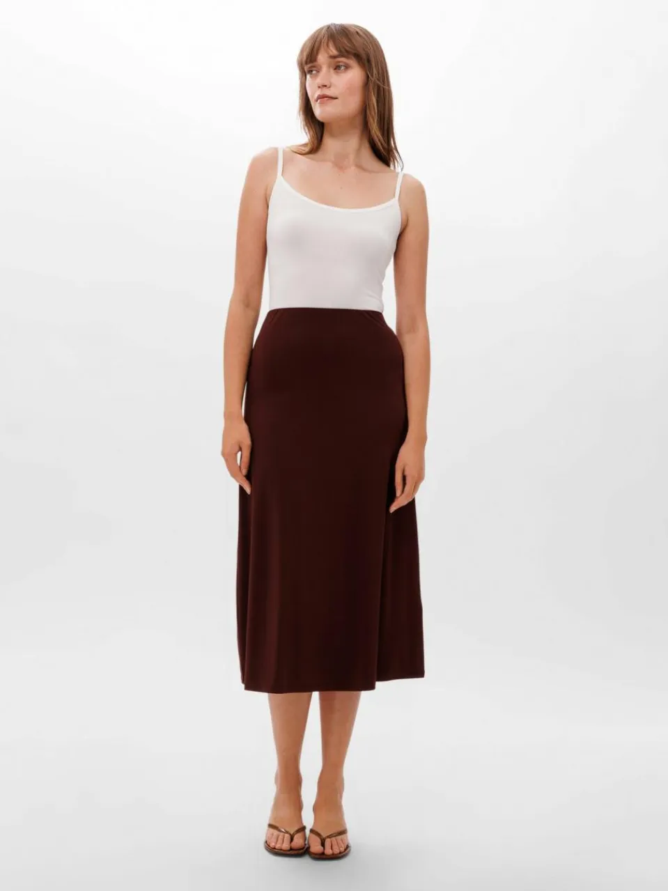Weicher Lumii Midi Rock aus Bambus Jersey. Fließend, bequem und mit elastischem Bund für einfaches Anziehen.