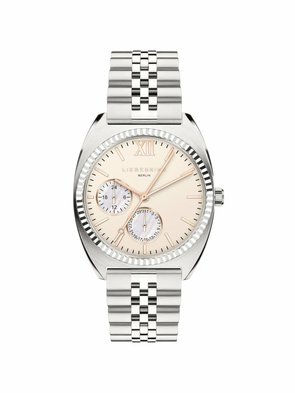 Multifunktion-Damenuhr der Marke LIEBESKIND BERLIN mit Edelstahlgehäuse und hochwertigem Edelstahlband. Sie verspricht nicht nur besten Tragekomfort, sondern verleiht dir in jedem Outfit ein einzigartiges Gefühl.