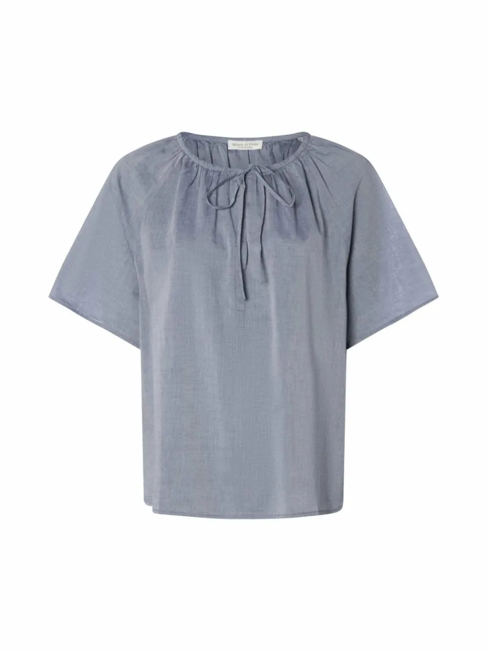 Die leichte Marc O’Polo Bluse aus Baumwolle erhält durch den Rundhalsausschnitt mit Tunnelzug und Band sowie kurze Raglanärmel einen modernen Look.