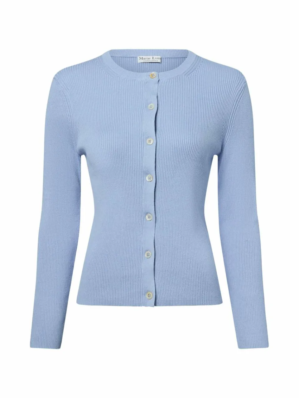 Ein moderner Klassiker: Die Strickjacke von Marie Lund punktet mit cleanem Rundhalsausschnitt, lässiger Rippstrick und hochwertiger Baumwolle – ein vielseitiges Basic für zeitgemäße Everyday-Looks.
