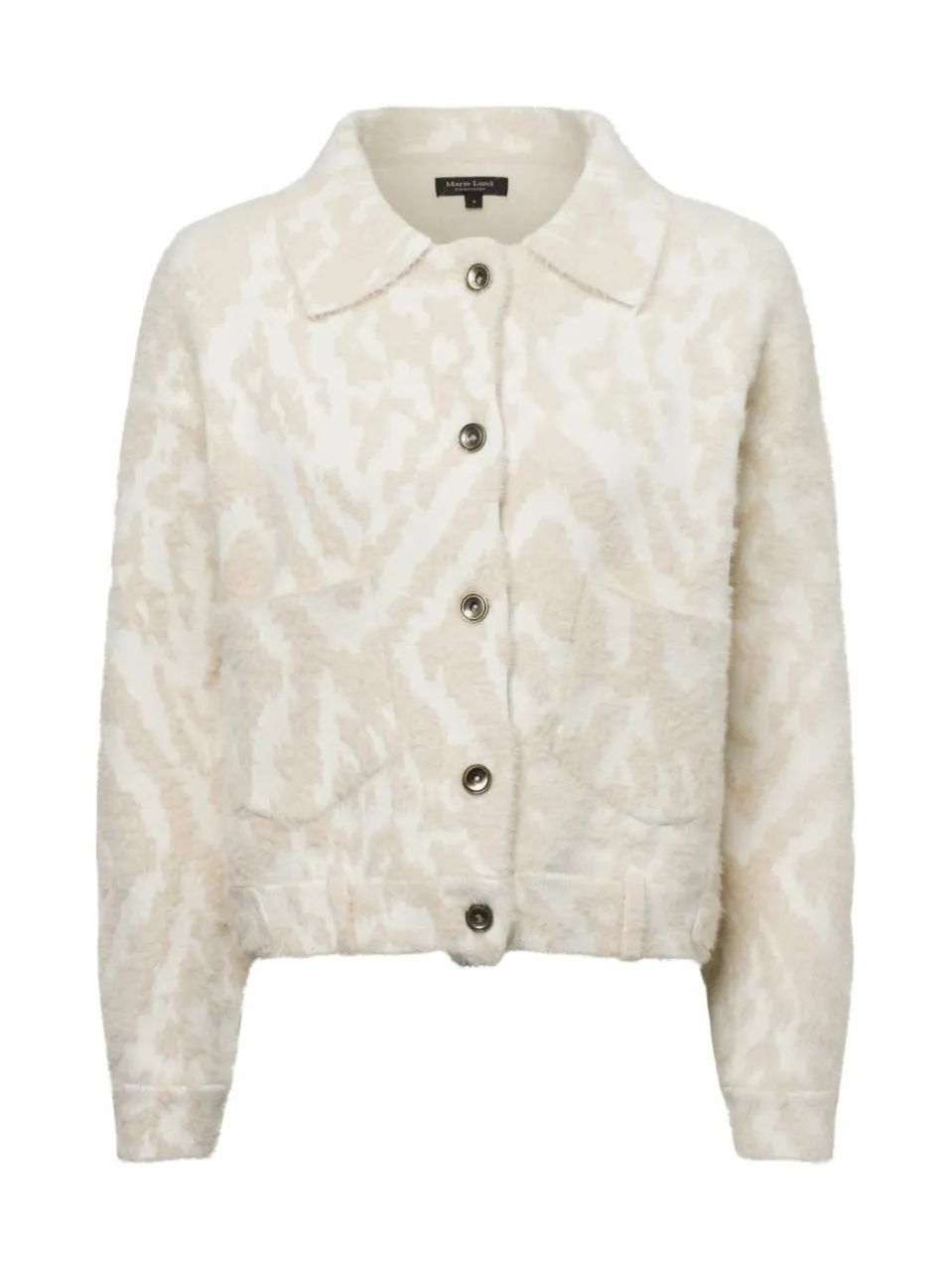 Rückseitige Knopfleiste, geprägtes Allover-Design, weiche Strick-Qualität: Die Marie Lund Jacke hebt sich mit feinen Details stilvoll hervor.