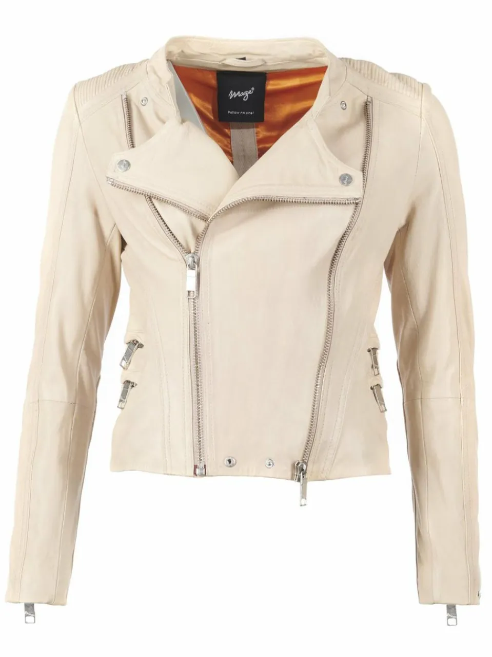 Stylische Biker Lederjacke der Trendmarke Maze. Die Lederjacke sticht durch ihr modisches und lässiges Design sofort ins Auge. Bis ins kleinste Detail wurde das Design durchdacht, was man auch anhand des auffälligen Innenfutters gut erkennen kann. Kombiniere deine neue Lieblingsbikerjacke lässig zur Jeans oder stylisch über dein Partykleid.