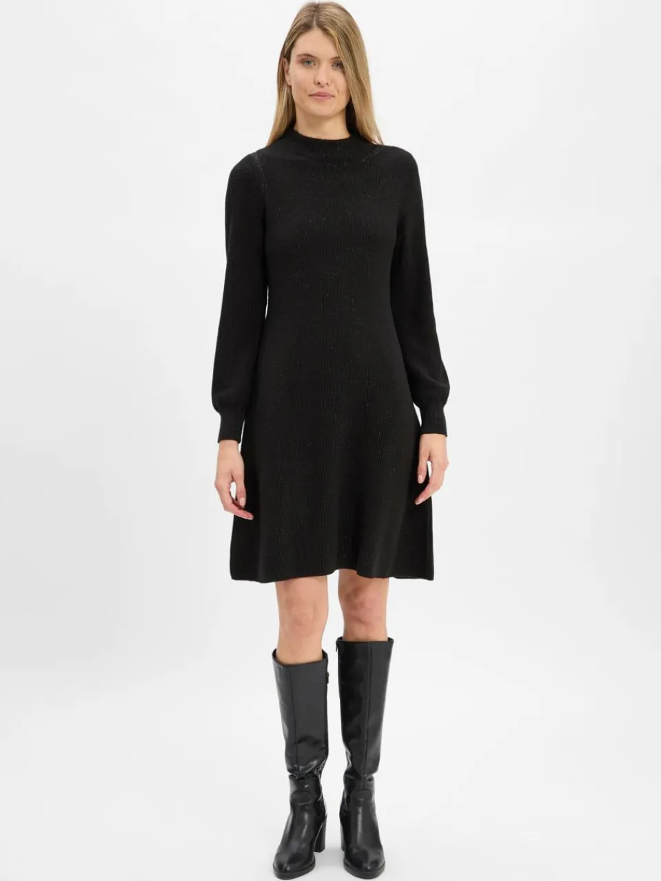 Mit Boots, Loafern oder Sneakern kombiniert: Das Monari Strickkleid zeigt sich besonders wandelbar und begeistert mit feinen Glanzfäden.