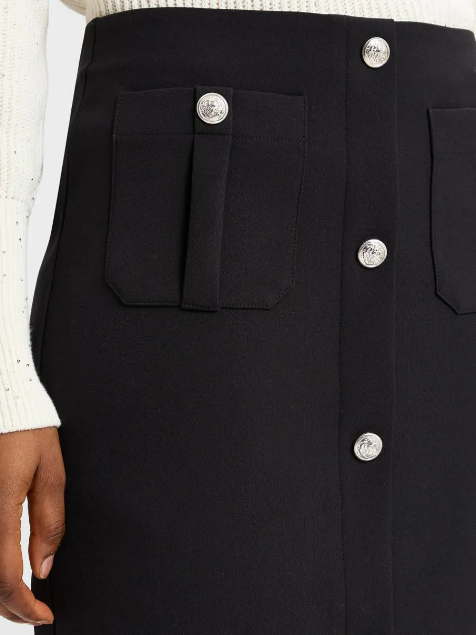 Der klassische Minirock von Monari besticht durch edle Zierknöpfe, die ihm eine elegante Note verleihen und ihn zu einem vielseitigen Kleidungsstück für verschiedene Anlässe machen.