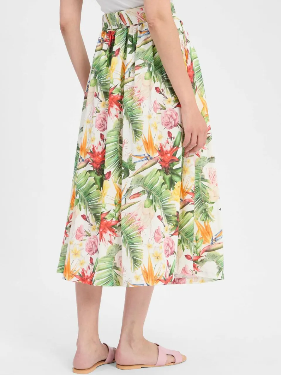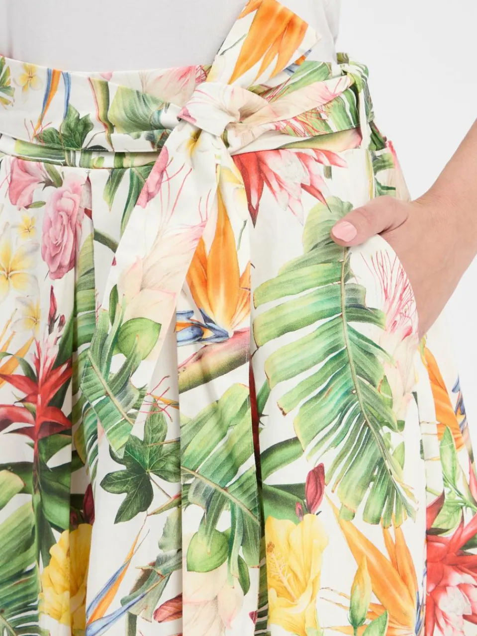 Das Floralmuster avanciert den MORE & MORE Faltenrock in Midilänge zum farbenfrohen Statement-Style für sommerliche Outfits.