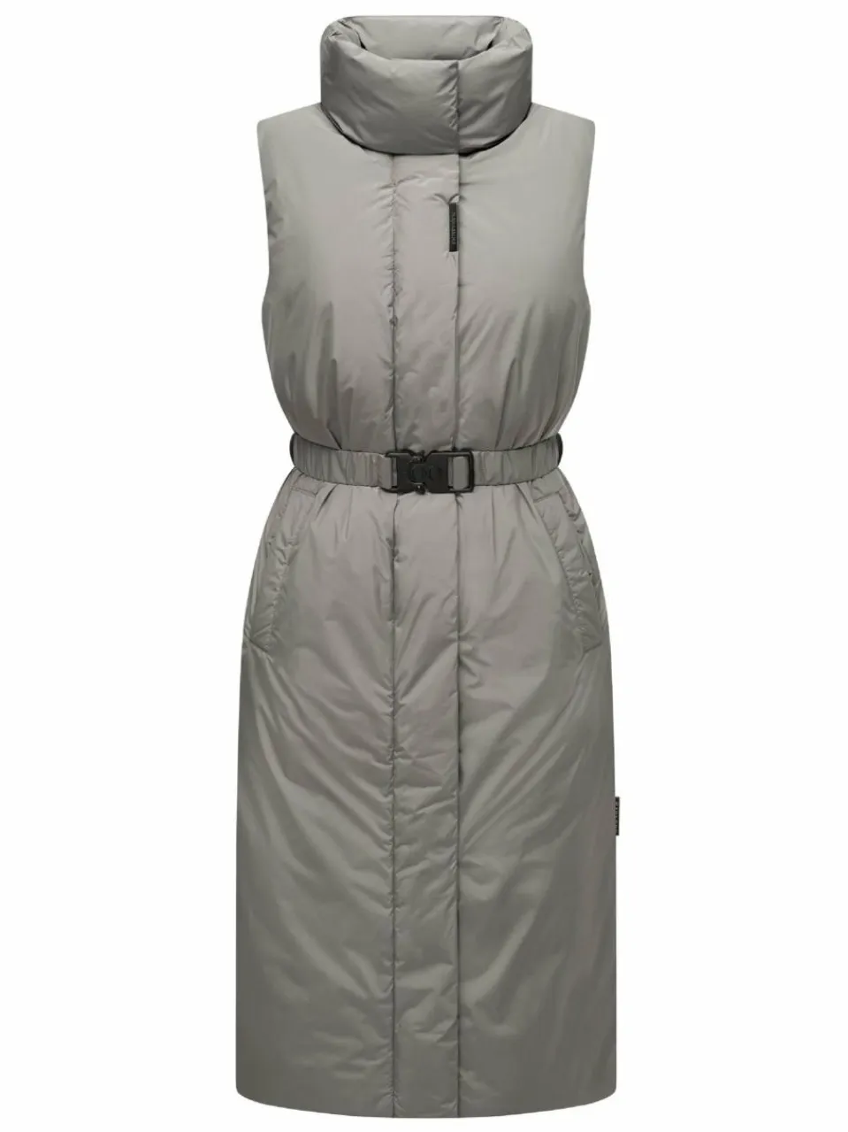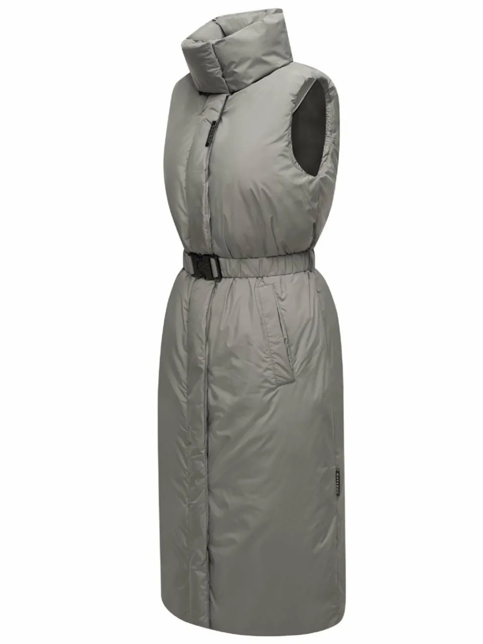 - Lange Ärmellose Damen Winterjacke mit Stehkragen