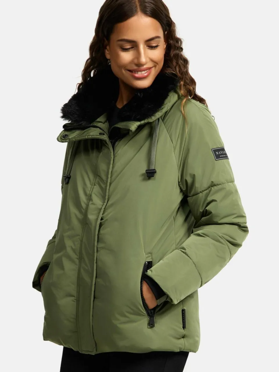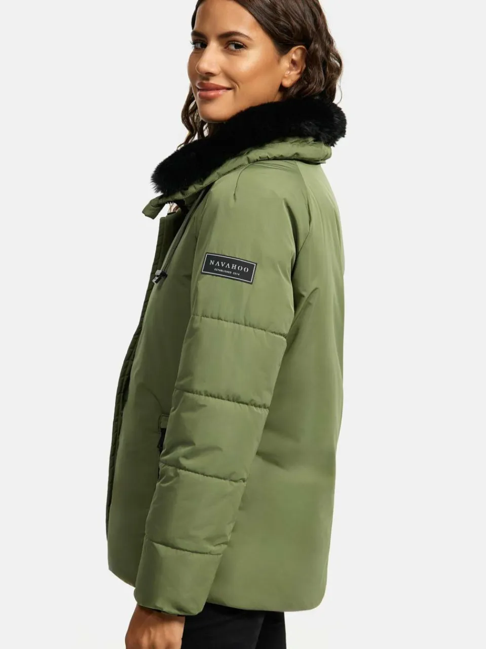 - Modische Damen Winterjacke mit (abnehmbarem) Kunstfellkragen