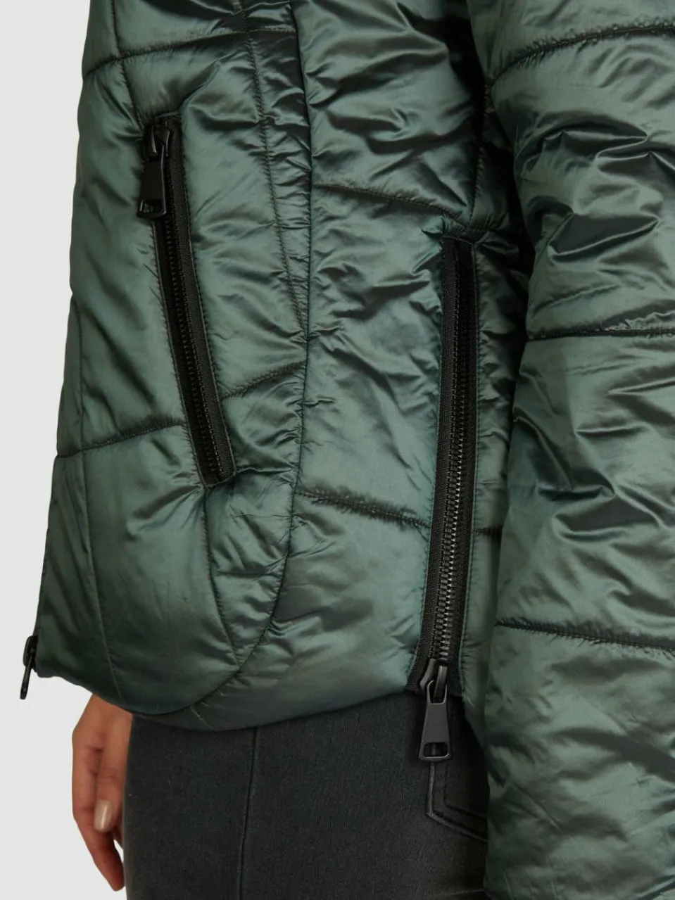 Die Steppjacke von NAVIGAZIONE macht sofort gute Laune! Ihr wunderschöner, glänzender Blauton liegt voll im Trend. Desweiteren überzeugt sie mit einem prima Schnitt, der geschlossen oder offen gleichermaßen gut aussieht. Mit den seitlichen Reißverschlüssen passt sich die Jacke noch flexibler an. Die zwei Taschen bieten genug Platz für alles was man braucht. Die abgerundete Form spendet Wohlbefinden, zudem bedeckt die länger geschnittene Rückseite den Po.