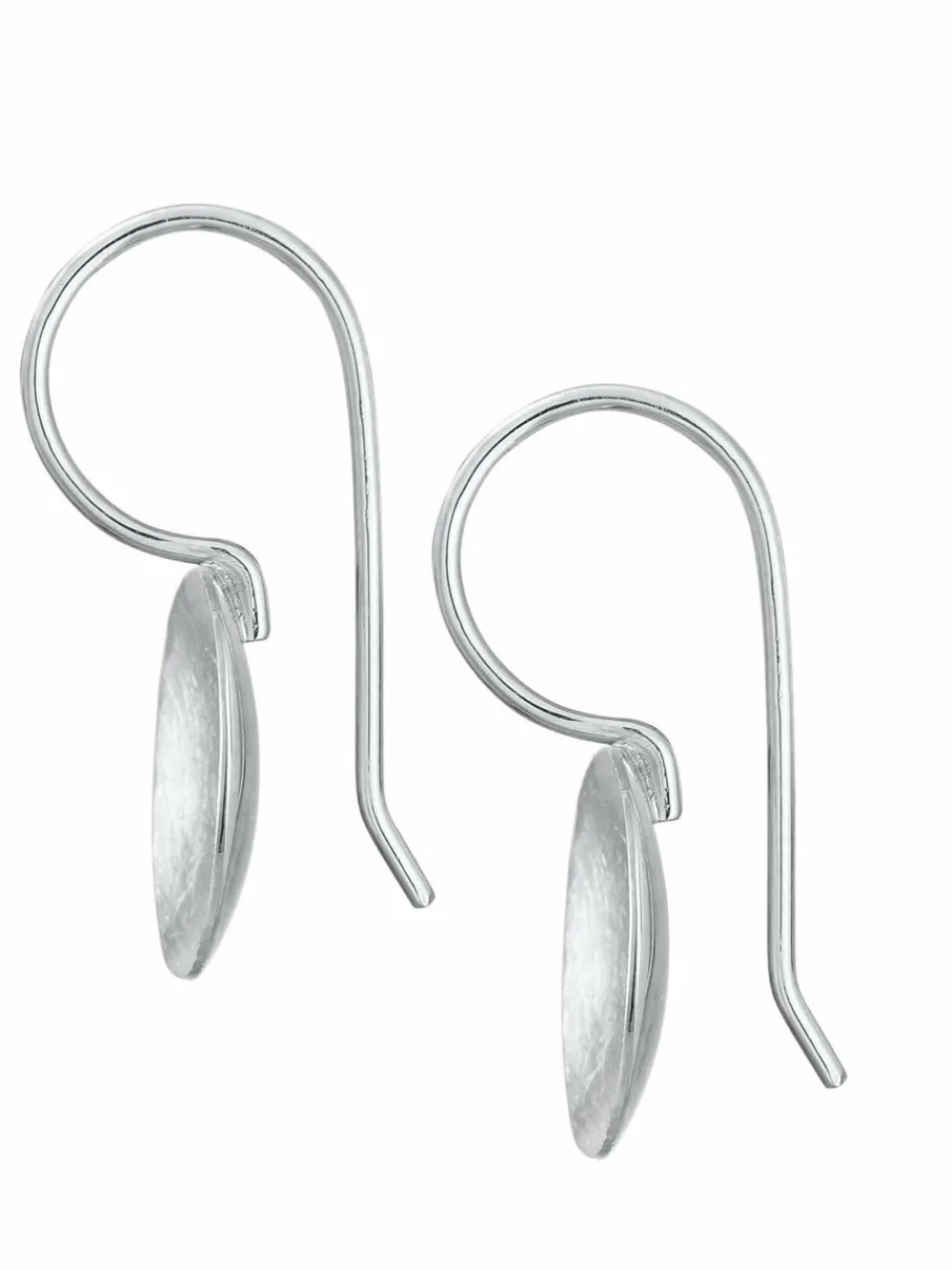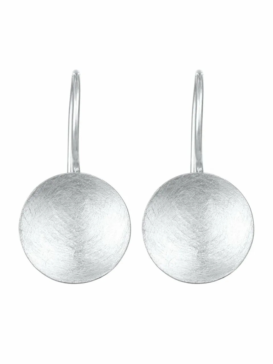 Modische Ohrhänger mit zeitloser runder Formgebung. Die Oberfläche der schlichten leicht gewölbten Plättchen ist kunstvoll gebürstet. Durch eine anschließende Neuversilberung, erhalten die Ohrringe eine besondere Brillanz. Eine gute Kombination zu jedem Outfit durch das schlicht moderne Design der Ohrhänger.