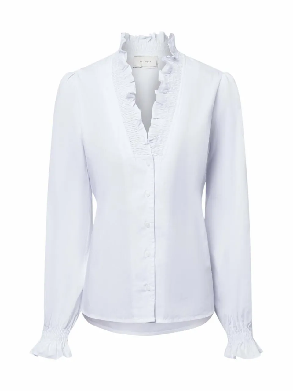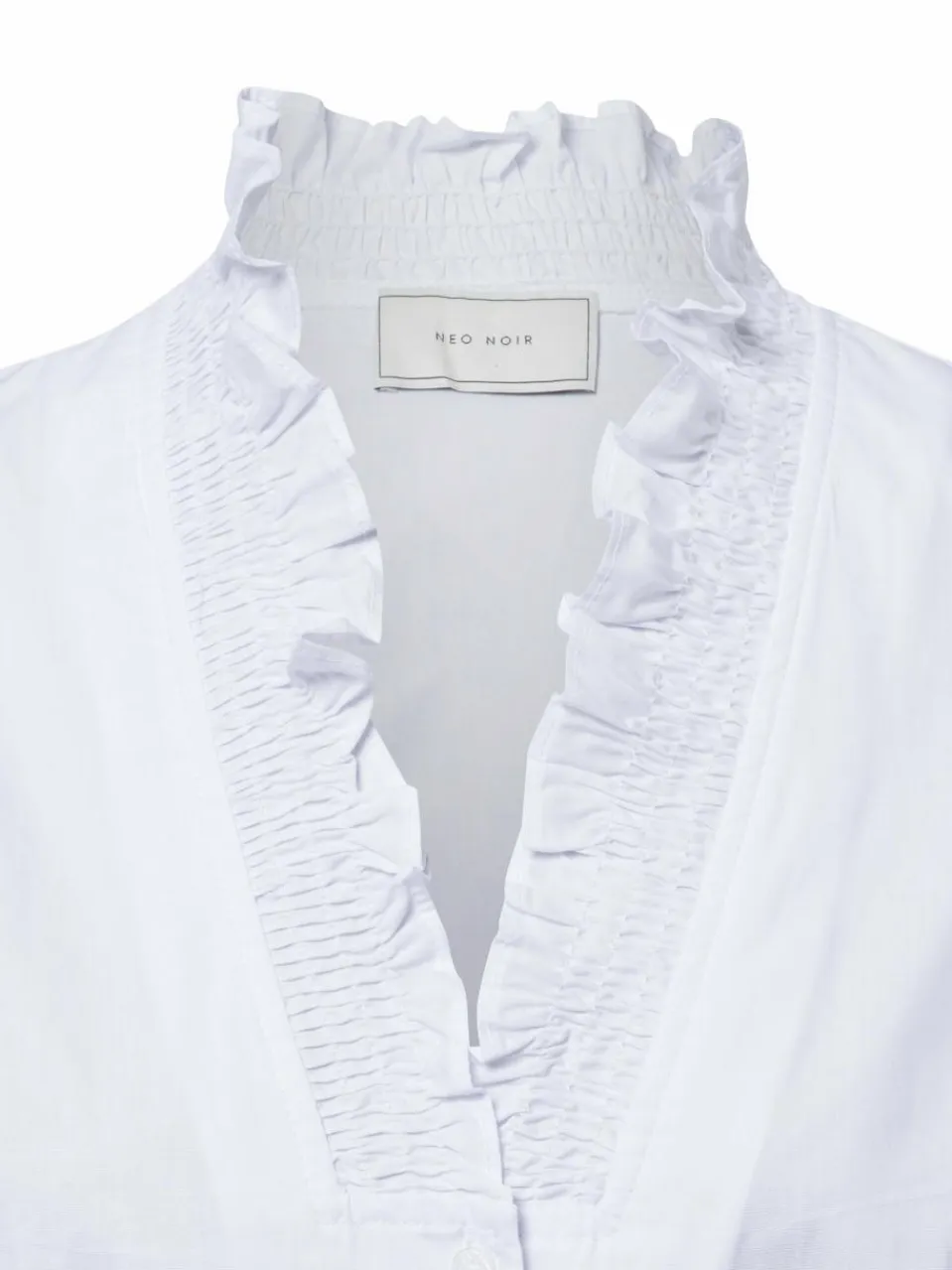 Die Bluse Brielle von Neo Noir kombiniert klassischen Stil mit verspielten Details – der Rüschen-Stehkragen verleiht dem zeitlosen Design eine feminine, trendbewusste Note.