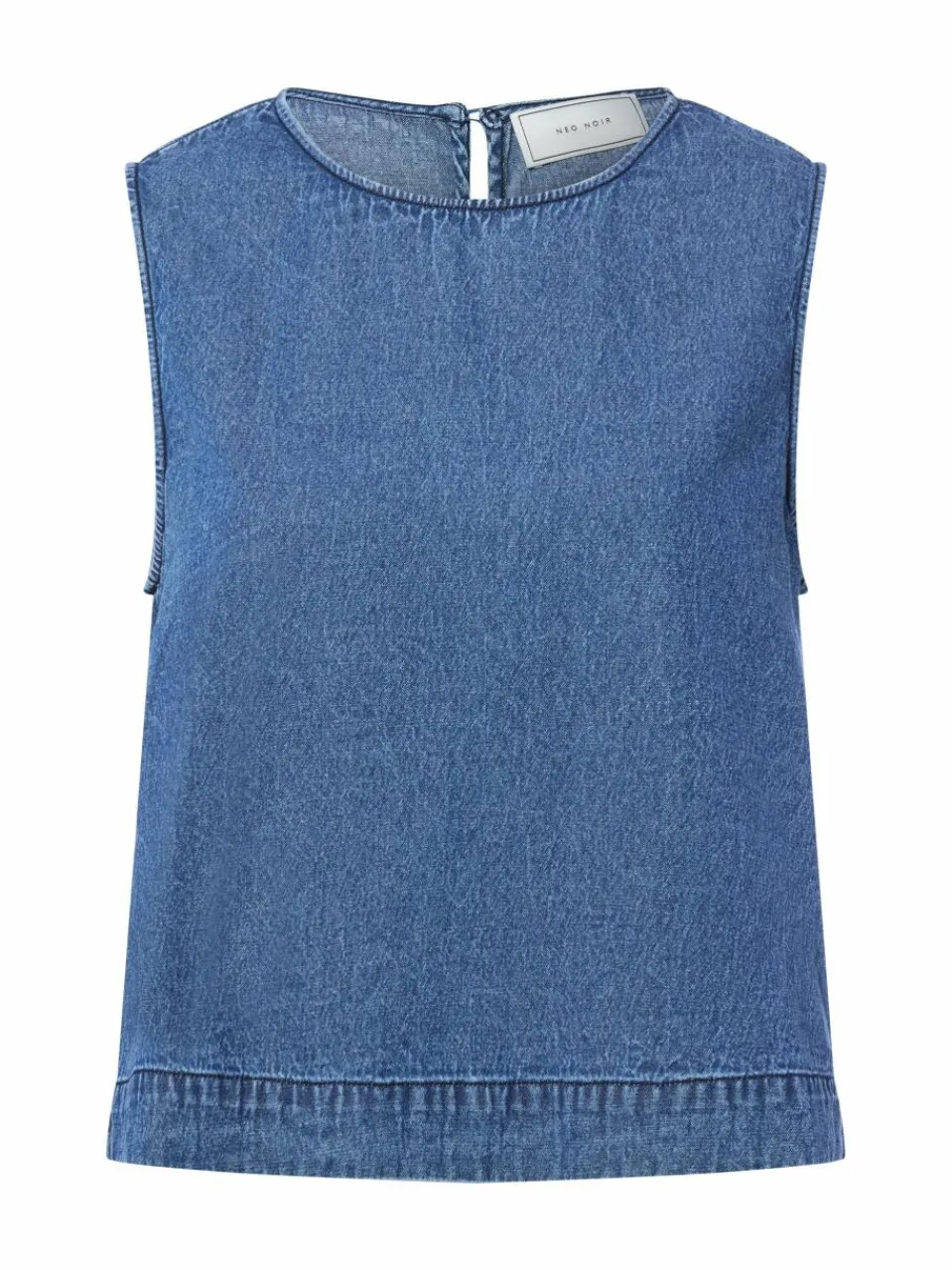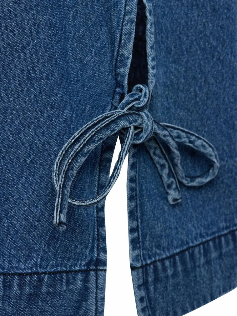 Seitliche Schlitze mit Bindeband machen den trendbewussten Look des Neo Noir Denim-Blusentops Svetlana perfekt.