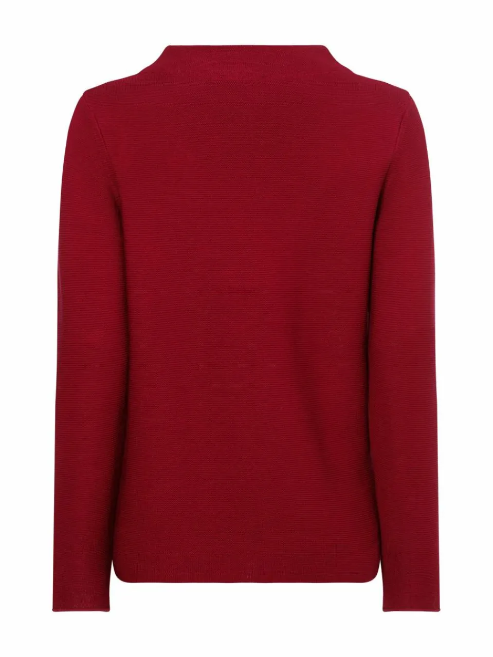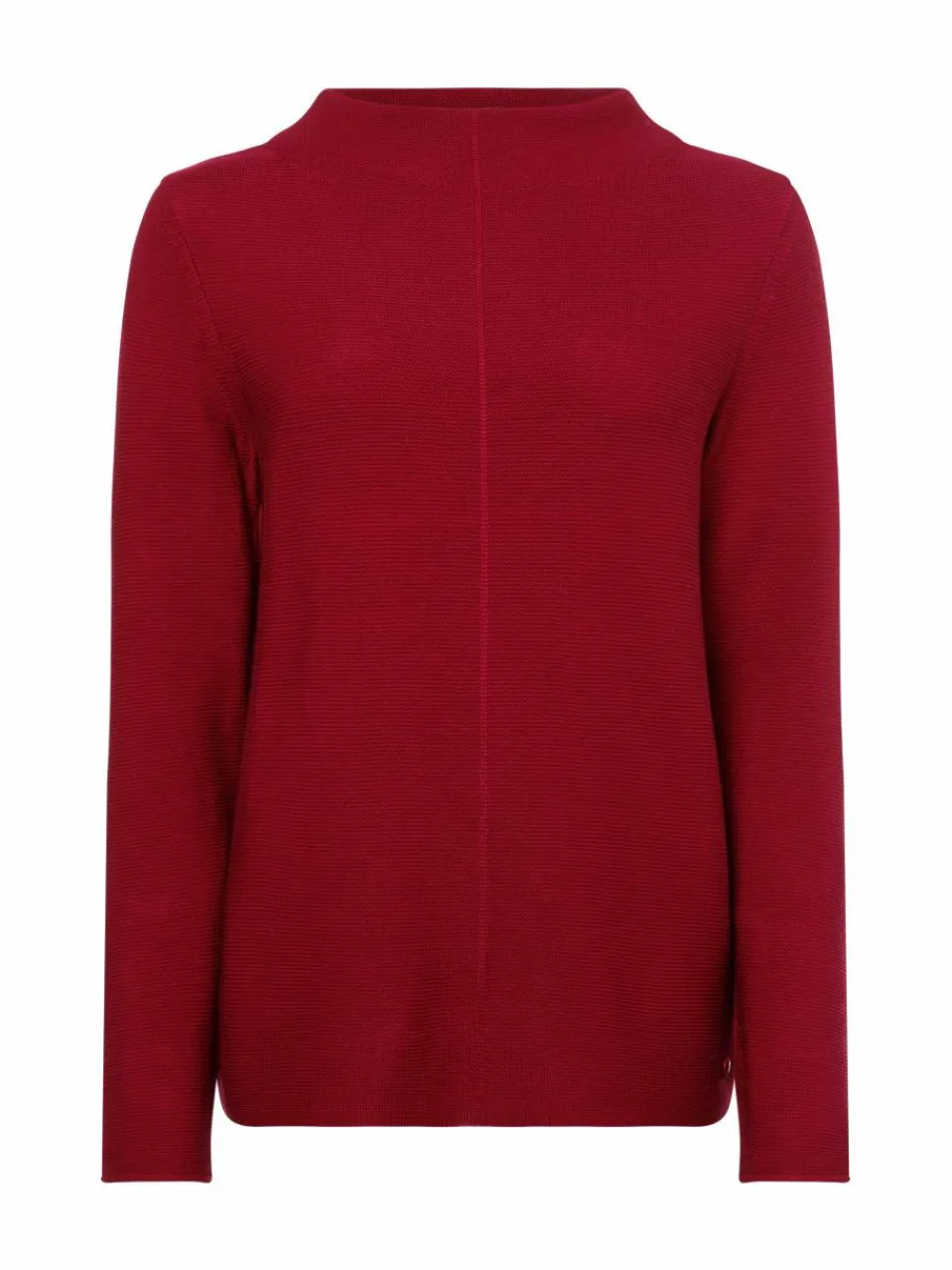 Der Pullover Henny von Olsen aus Baumwollmischgewebe erhält durch die symmetrische Strickstruktur und die akzentuierenden Teilungsnähte einen stylischen Look.