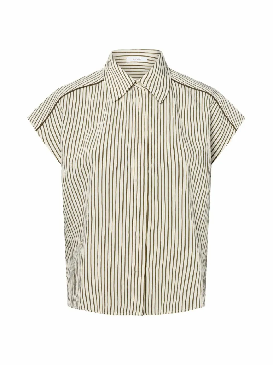 Die verdeckte Knopfleiste unterstreicht den puristischen Look der Opus Bluse Famella und zaubert im Mix mit den überschnittenen Schultern einen raffinierten Stilbruch.