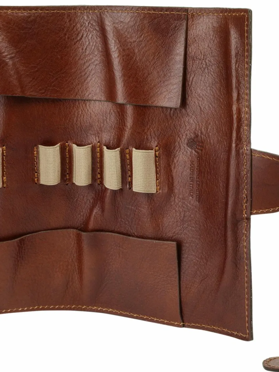 - Made in Italy Qualität: Zeitlos-klassisches Design mit eleganter Logo-Prägung auf der Front verleiht dieser Lederrolle einen besonders edlen und professionellen Look.