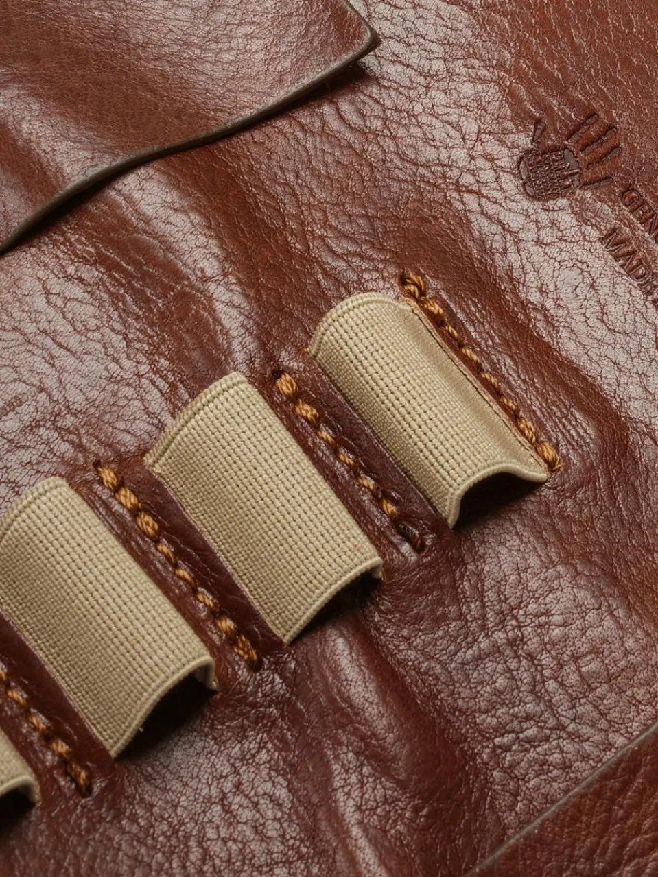 Die edel aufgemachte Stiftrolle von piké aus vegetabilem Rindleder bietet eine komfortable Aufbewahrung für Ihre Schreibutensilien. Kompakt, im zeitlos-klassischen Stil, wird das Täschchen mit umlaufendem Verschluss mit Druckknopf sicher verschlossen.