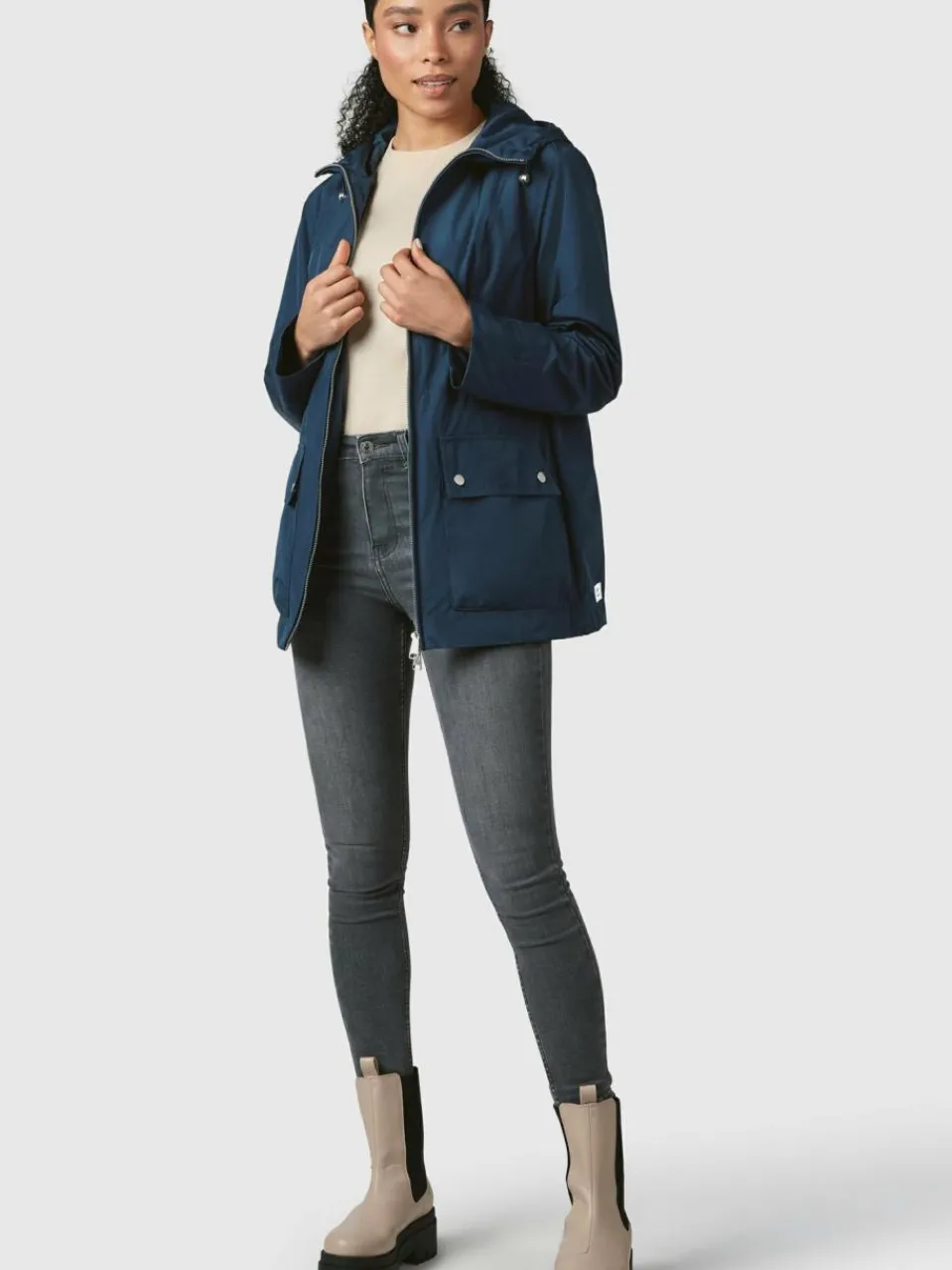 - Verstellbare Kapuze und Pattentaschen mit Druckknopf