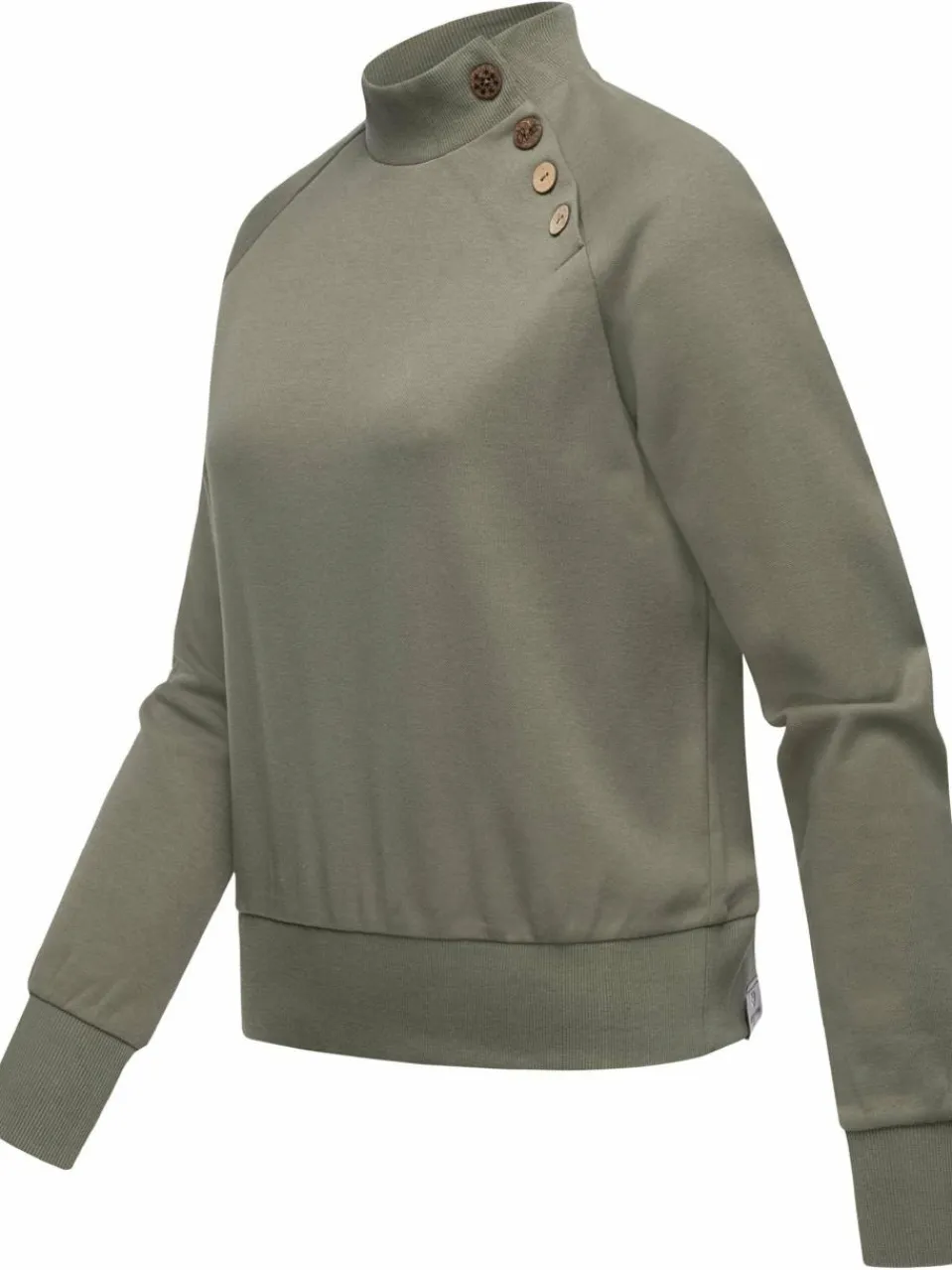 Langärmliger unifarbener und super weicher Sweatpullover mit warmen Rippbünchen und stylischen Knöpfen von Ragwear.