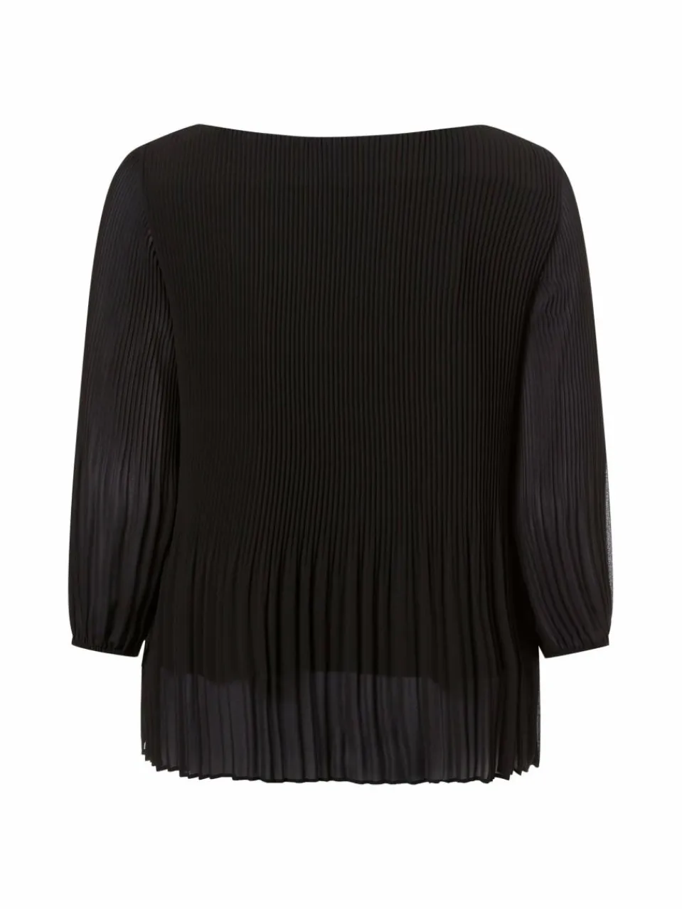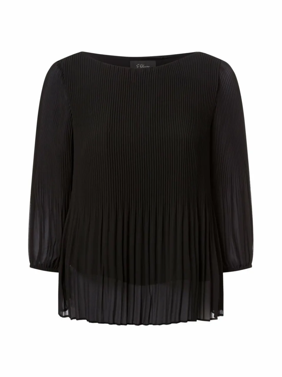 Das s.Oliver BLACK LABEL Plissee-Blusenshirt aus hochwertiger Kunstfaserqualität vereint stilvolles Design mit einem eleganten Fall – perfekt für sowohl freizeitliche als auch festliche Anlässe.
