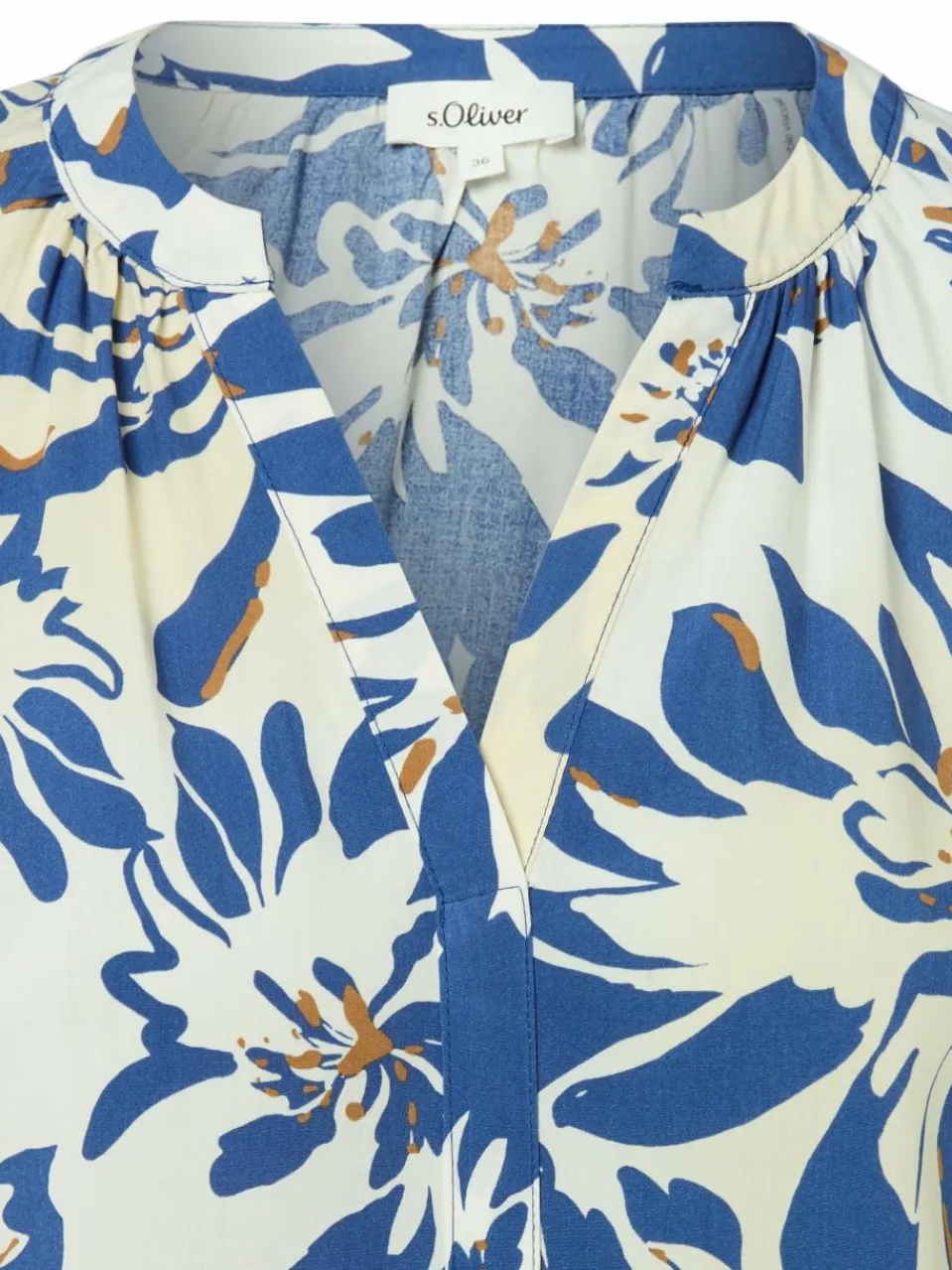 Das s.Oliver Blusenshirt fällt angenehm locker und begeistert zudem mit seiner fließenden Viskose-Qualität – ein echtes Wohlfühl-Piece.