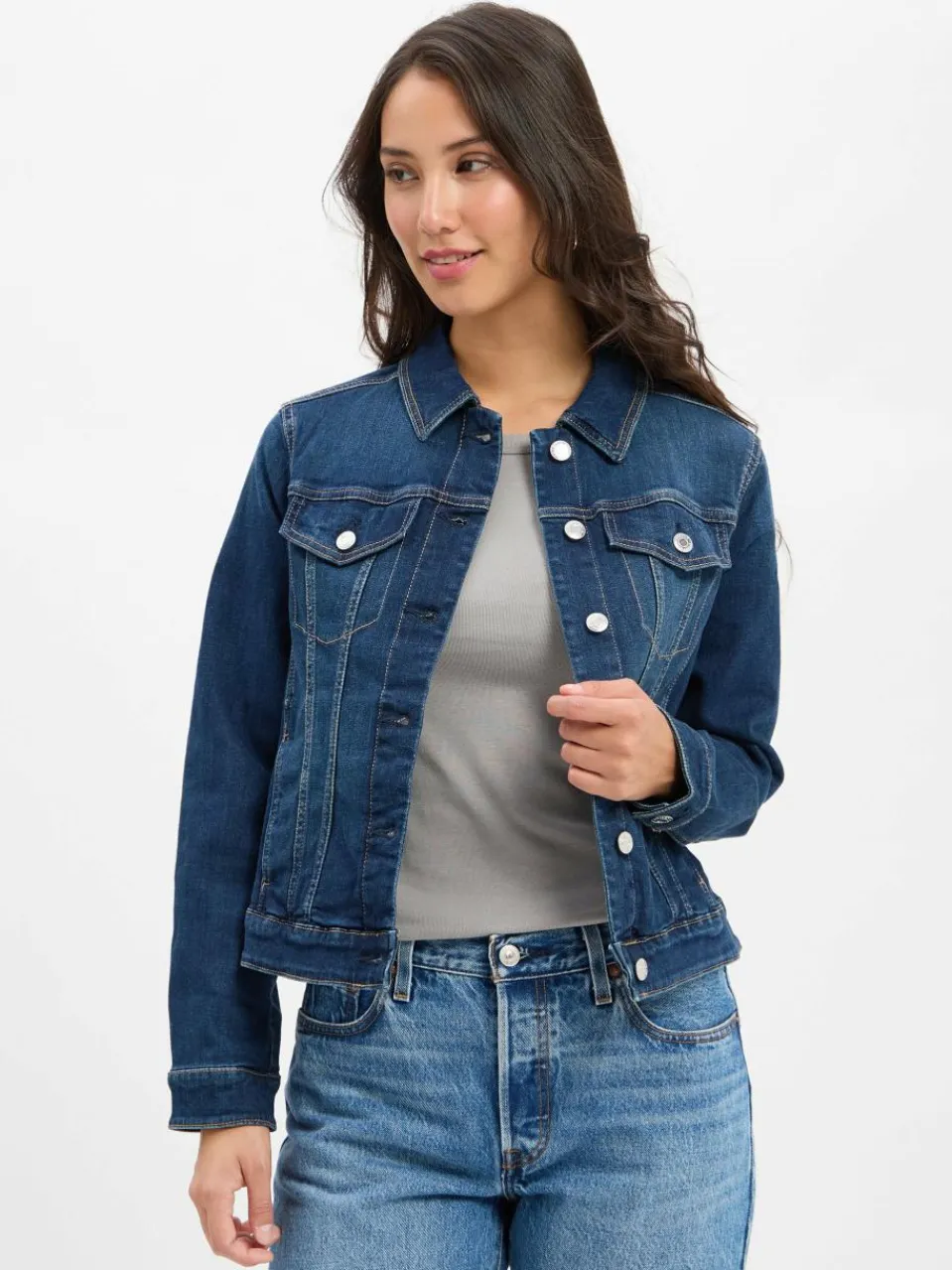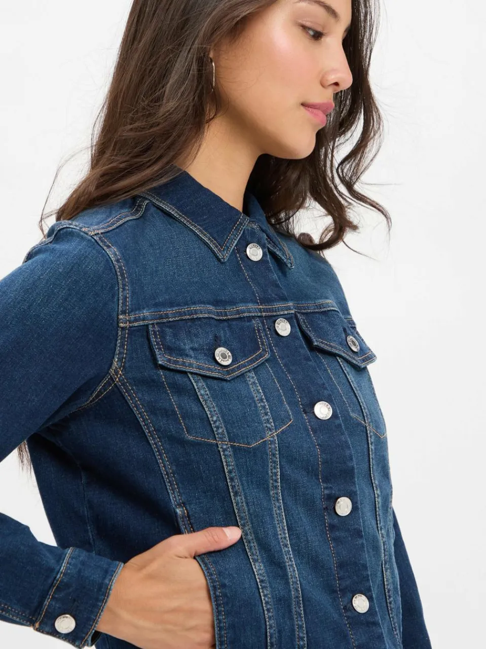Die s.Oliver Jeansjacke aus Baumwoll-Denim besticht durch ihren klassischen, körpernahen Schnitt und zeitlosen Denim-Stil.