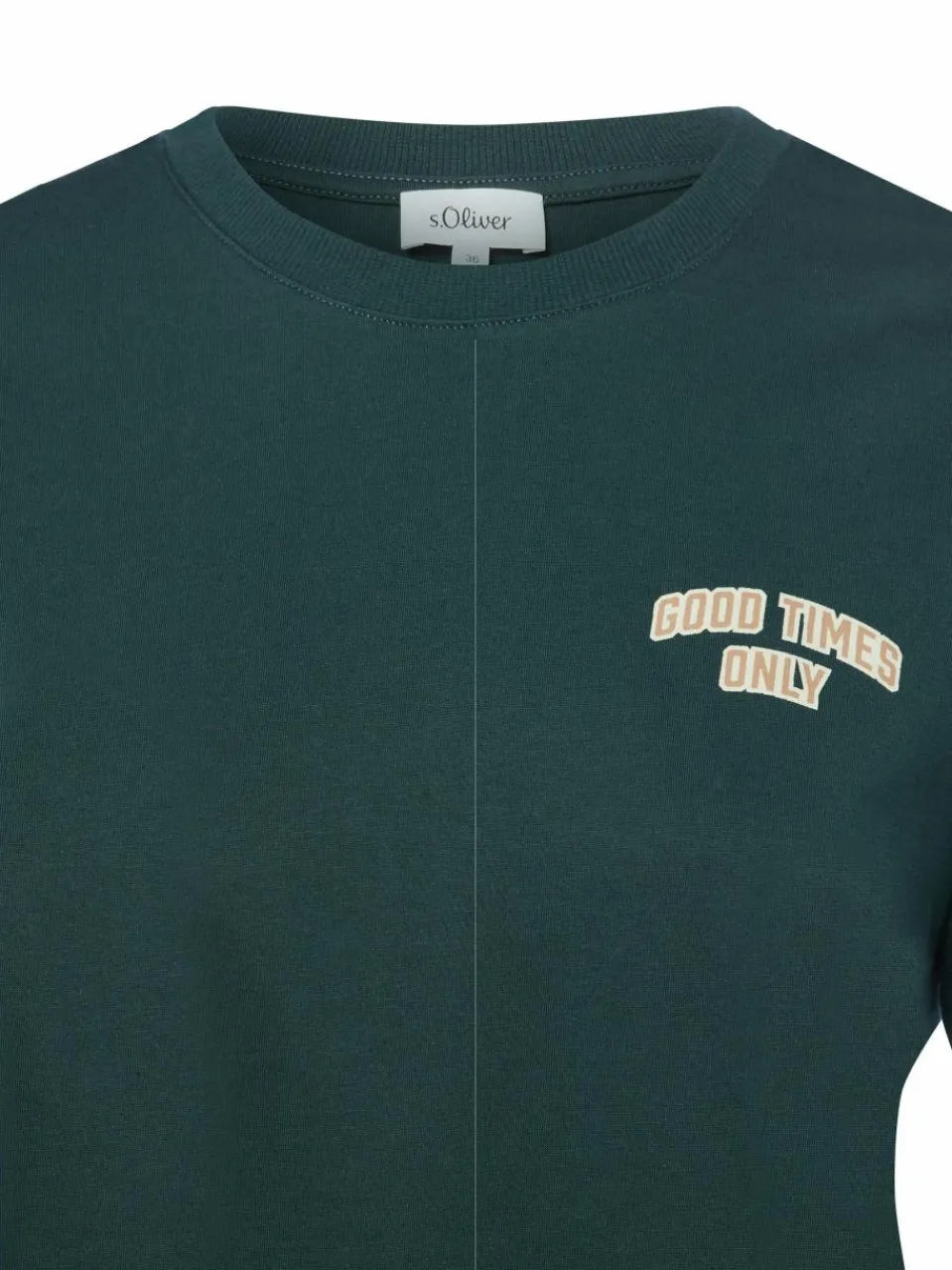 Der Front- und Backprint zaubert aus dem s.Oliver T-Shirt im Basic-Stil einen coolen Hingucker, der jeden Denim-Look optimal komplettiert.