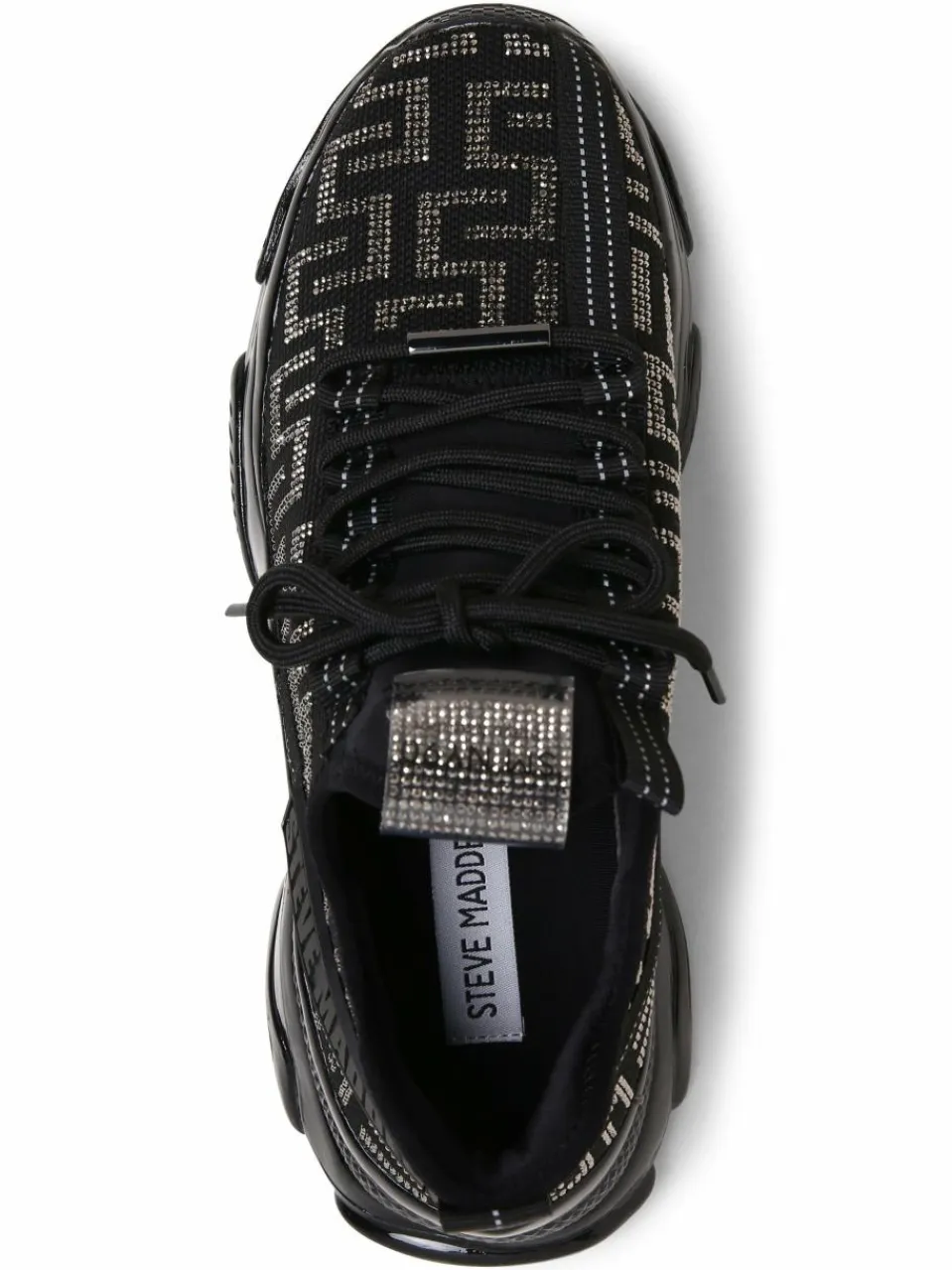 Die Steve Madden Sneaker Maxout sind mit ihren Glitzersteinen und der Chunky Sohle in Lack-Optik ein Statement-Piece, das alle Blicke auf sich zieht.