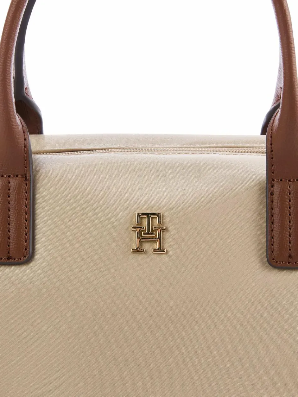 Die Mini-Handtasche von Tommy Hilfiger punktet im Shopper-Design aus rougher Nylon-Qualität mit ledernen Details und glanzvoller Hardware.