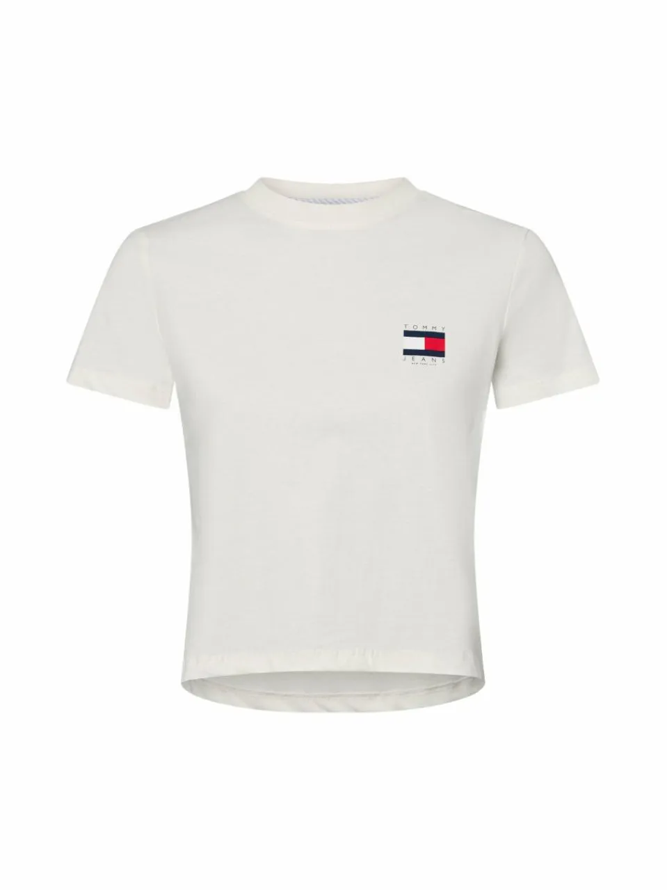 Der Crop Fit des Tommy Jeans T-Shirts kommt besonders schön zu High Waist Hosen oder Röcken zur Geltung.
