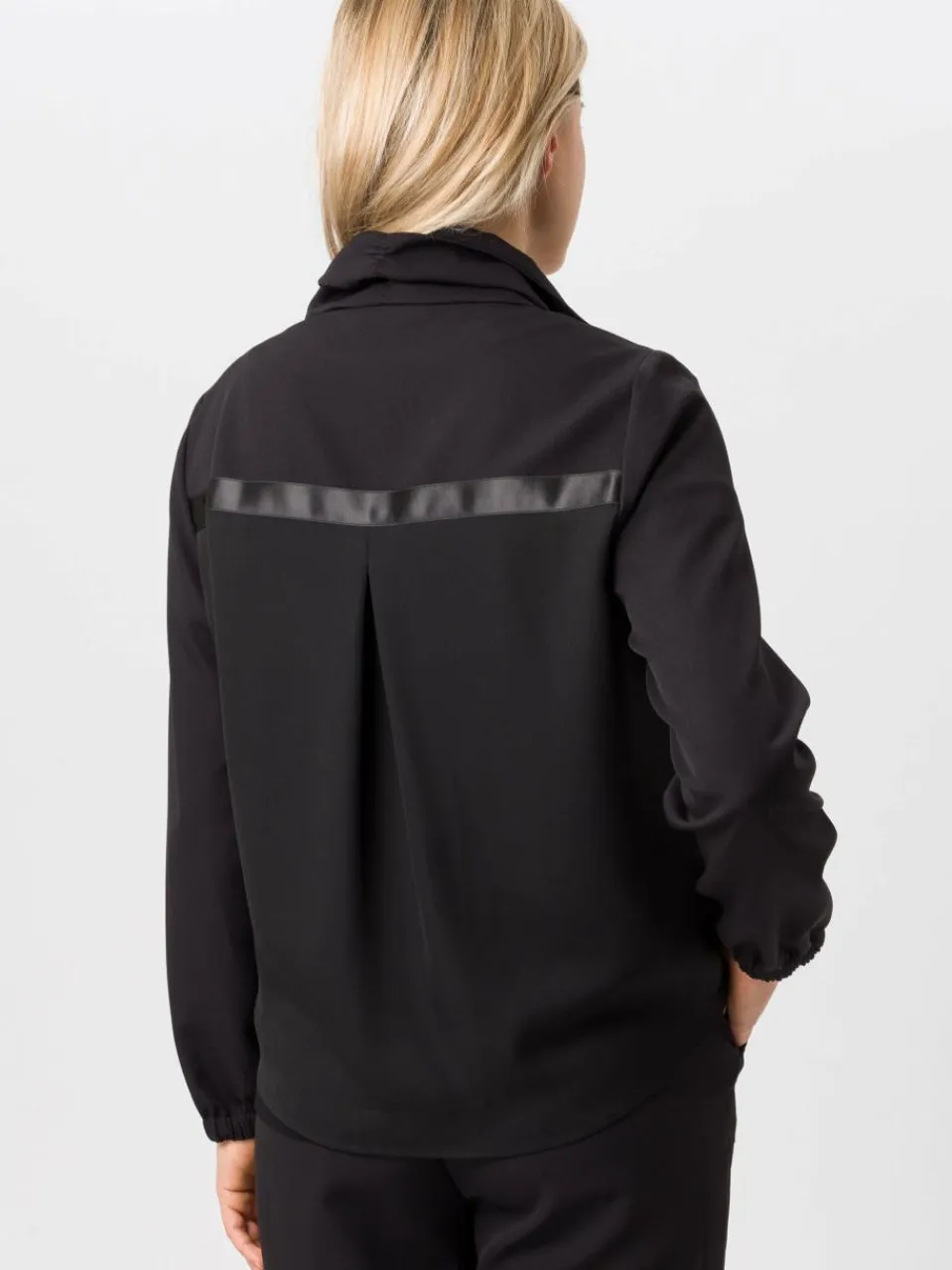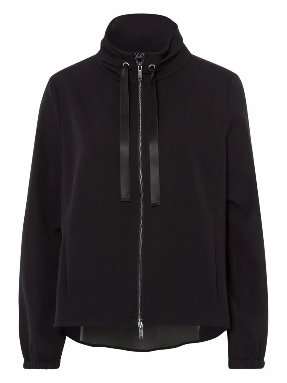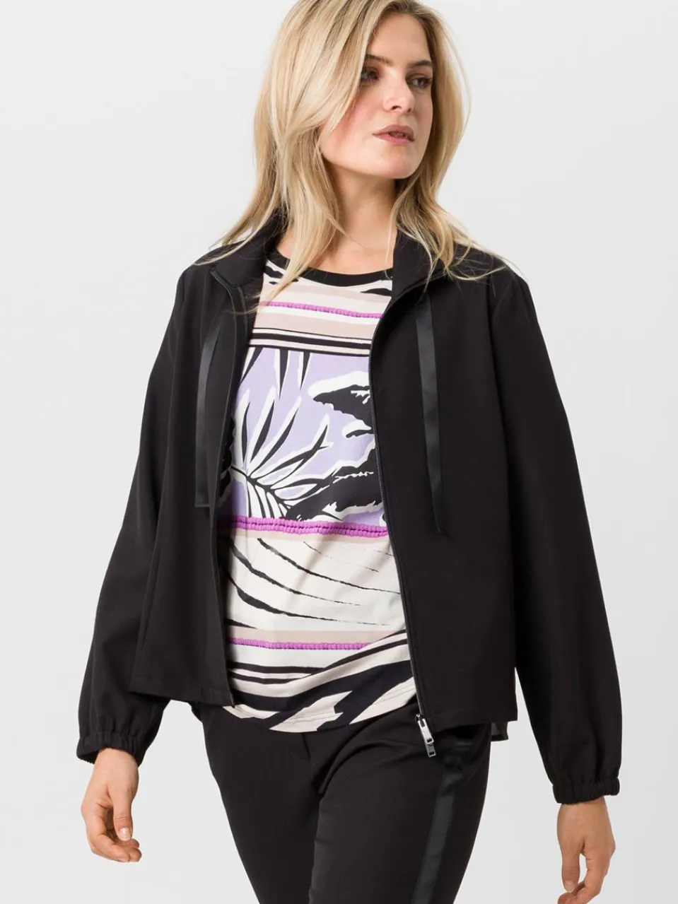 Diese moderne Jacke überzeugt mit einem hohen Kragen, dekorativen Bändern und einem durchgehenden Reißverschluss. Der lockere Schnitt und elastische Bündchen sorgen für Komfort, während das schlichte Design vielseitig einsetzbar ist. Perfekt für jeden Anlass.
