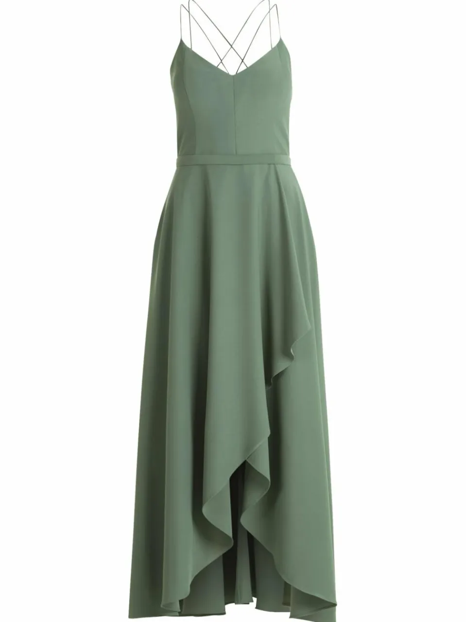 Dieses Abendkleid von Vera Mont setzt Ihre Figur stilvoll in Szene. Die taillierte Passform und praktischen Nahttaschen sorgen für Modernität, während schlichte Spaghettiträger und das unifarbene Design Eleganz verleihen. Der Volantschnitt und die Maxi-Läge machen das ärmellose Kleid zu einem echten Hingucker – ideal für besondere Anlässe!