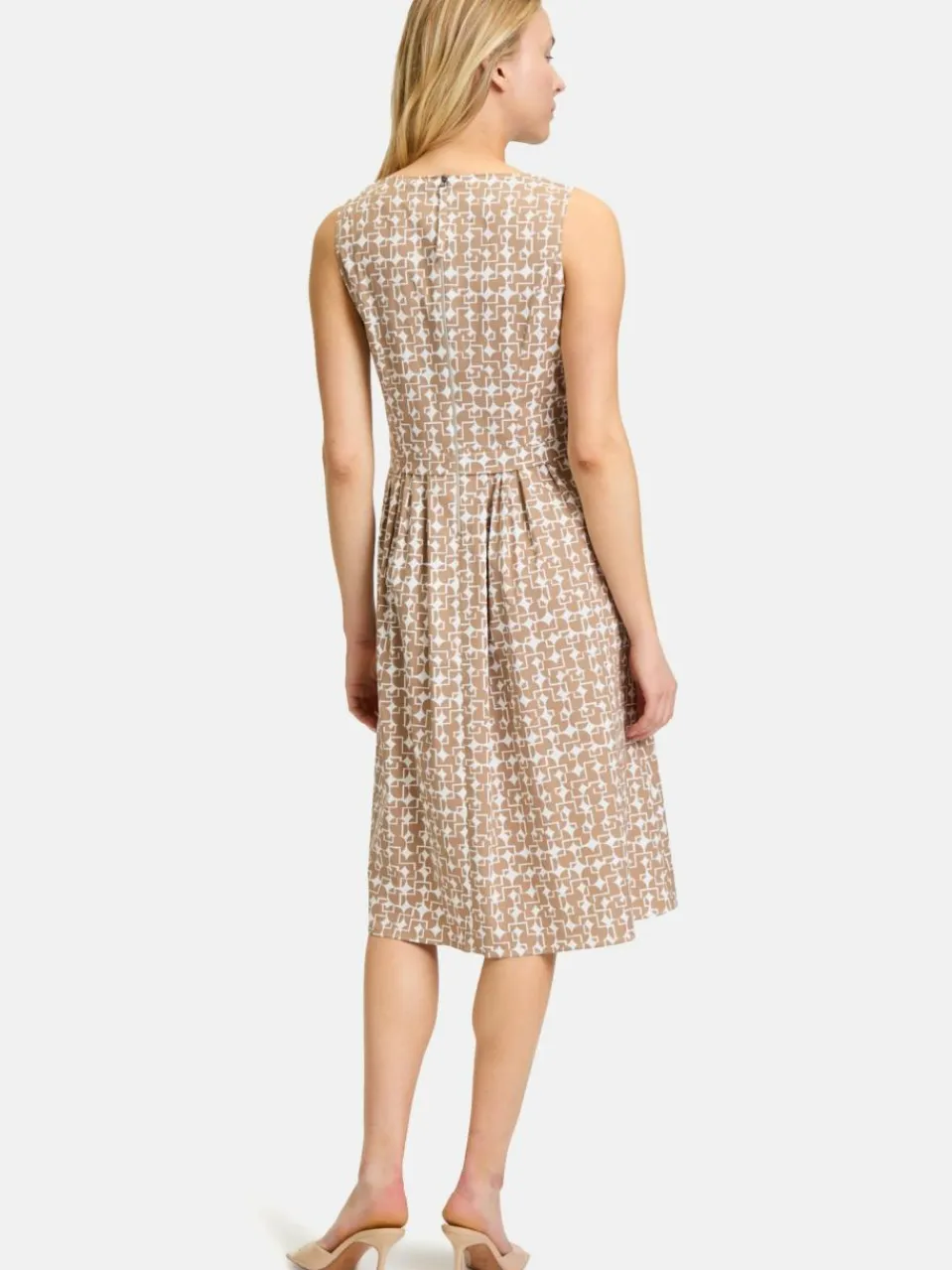 Dieses modische Highlight ist ein echtes Must-have für den Sommer! Das ärmellose Sommerkleid besticht durch sein feminines Design mit grafischem Muster und einem eleganten Rundhalsausschnitt. Der taillierte Schnitt und die feinen Falten verleihen dem Kleid eine charmante Silhouette. Hergestellt aus einer leichten Baumwoll-Mischung, bietet es höchsten Tragekomfort. Praktische Details wie der Reißverschluss und die Nahttaschen machen es zum perfekten Begleiter für stilvolle Auftritte.