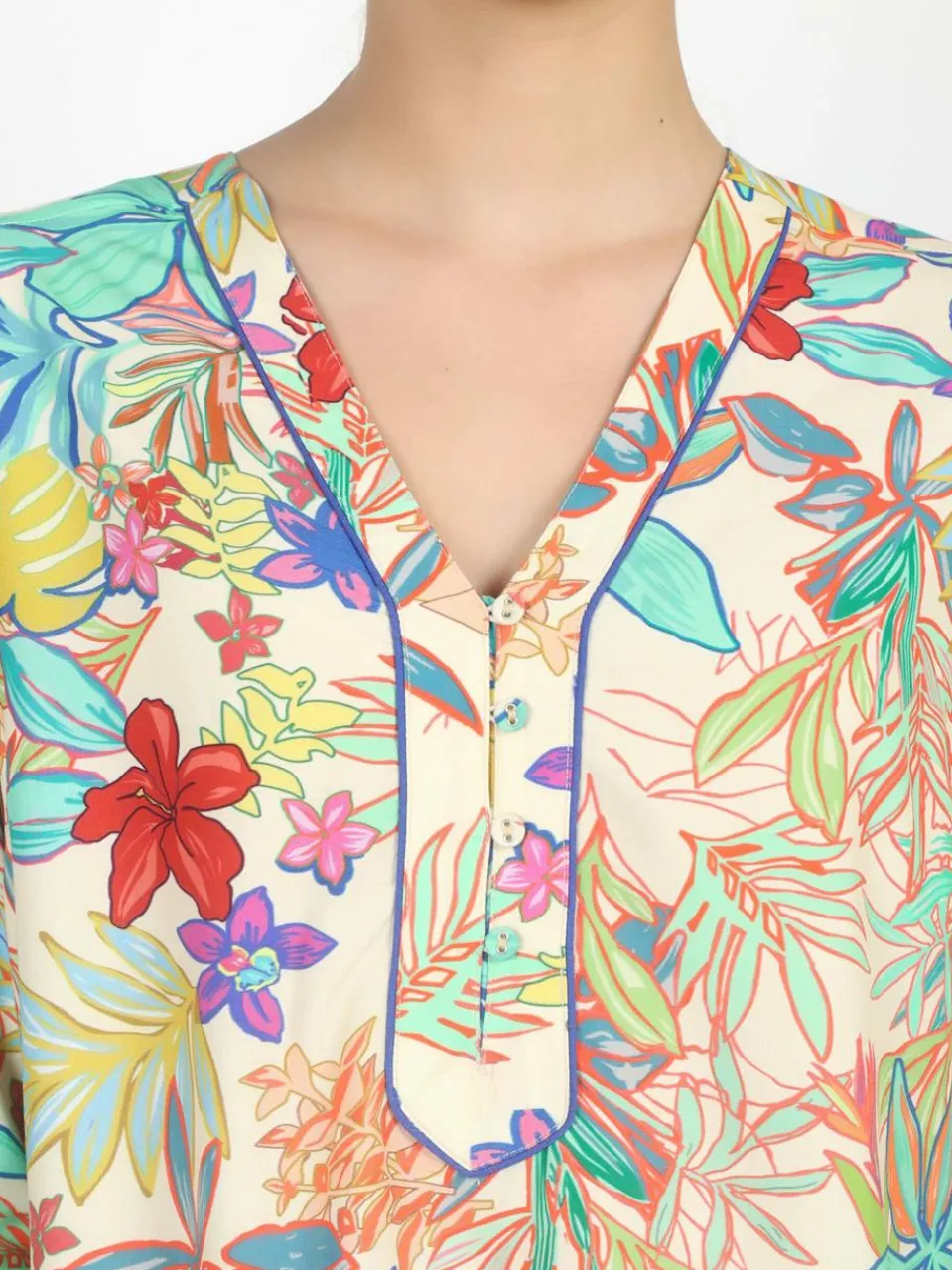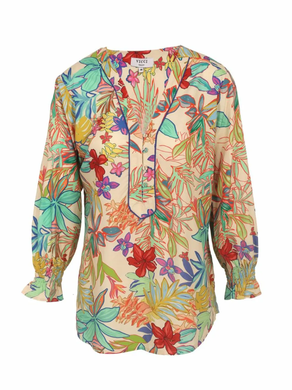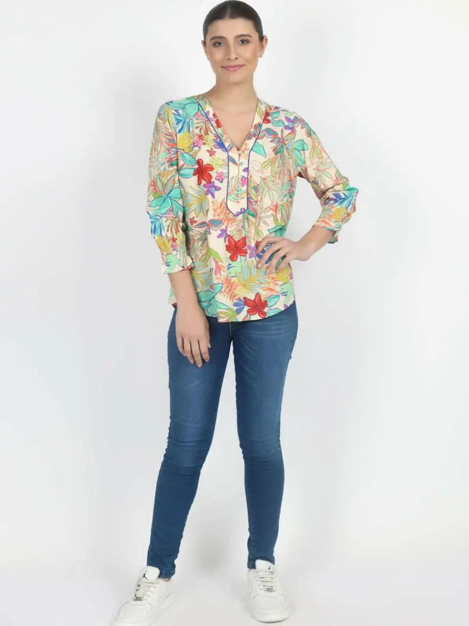 Setzen Sie ein Style-Statement mit dieser wunderschönen klassischen Bluse mit Blumen-druck! Aus Viskose ist diese Bluse in legerer Passform gefertigt. Der V-Ausschnitt mit kurzer Knopfleiste machen diese Bluse zu einer perfekten Freizeitbluse. Gesamtlänge: 65 cm, Rückenbreite: 36,5 cm, Brustweite: 98 cm