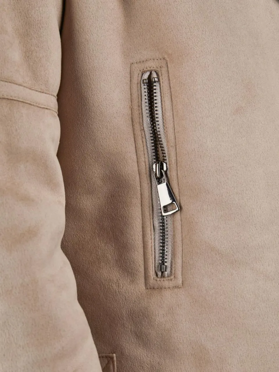 - Polarskinimitat-Bikerjacke mit großem Reverskragen