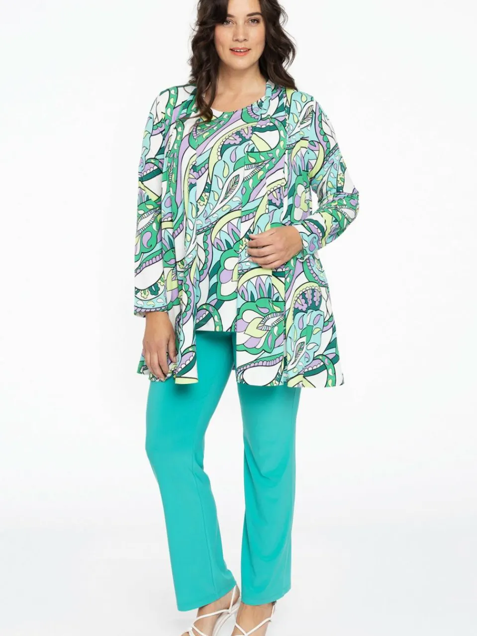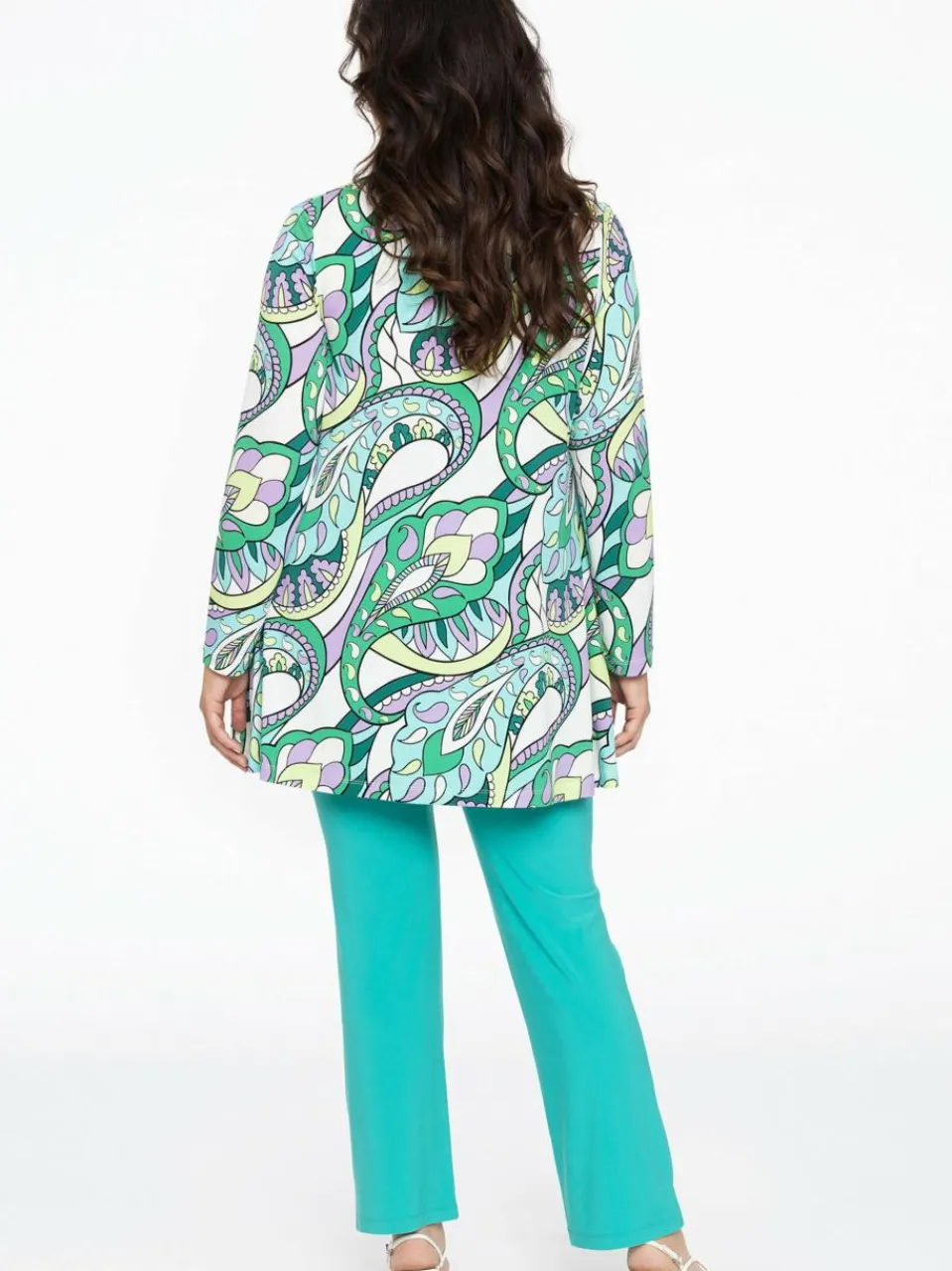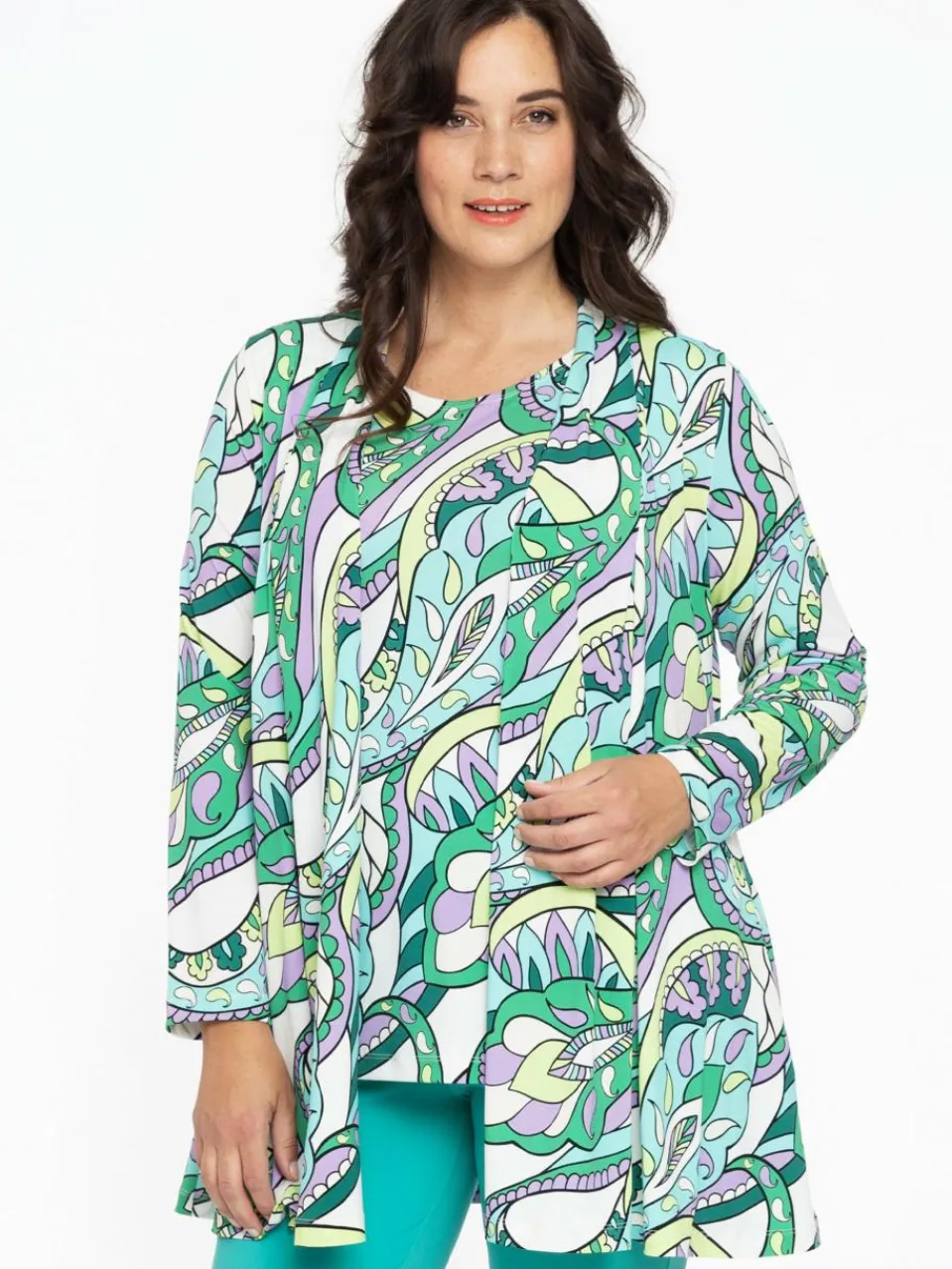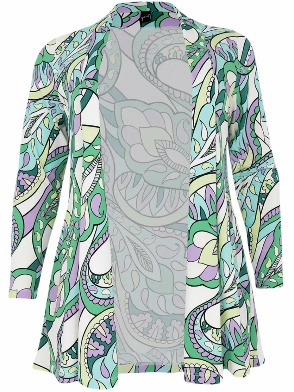 Mit diesem Cardigan bringst du mit einem grafischen Paisley in frischen Lila-, Türkis- und Grüntönen, Frühlingsgefühle in deinen Kleiderschrank. Der langärmlige Cardigan hat eine offene, plissierte Front und ist aus dem Dolce-Travel-Material gefertigt. Eine perfekte Schicht über Oberteilen in einer großen Auswahl an Farbtönen.