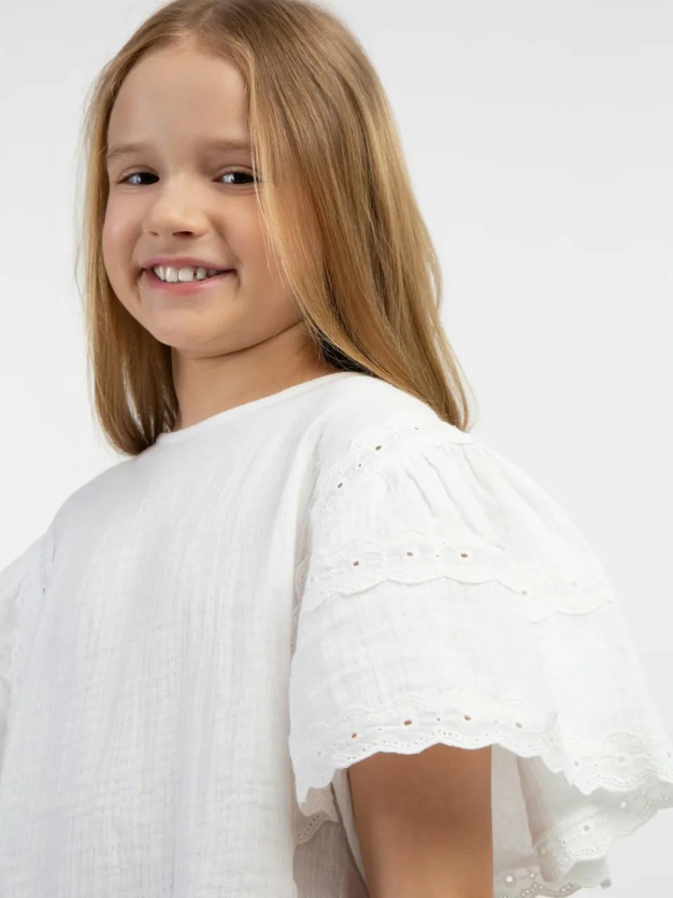 Dreimaster Mädchen<Mädchen Blusenshirt mit Spitze weiß uni