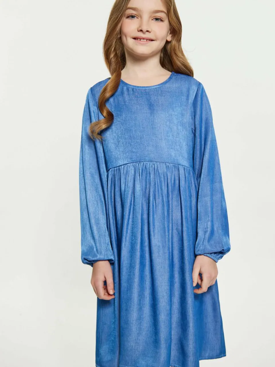This plain girl’s dress will be a lovely addition to her wardrobe. Thanks to its simple and modest cut, long sleeves and round neck, it exudes timeless charm. Flared, knee-length dress. Light material increases comfort, and a visible zipper on the back makes it comfortable to wear. Perfect for casual occasions or accessorized for special occasions, this dress is versatile. This product is part of the Kids Collection.
