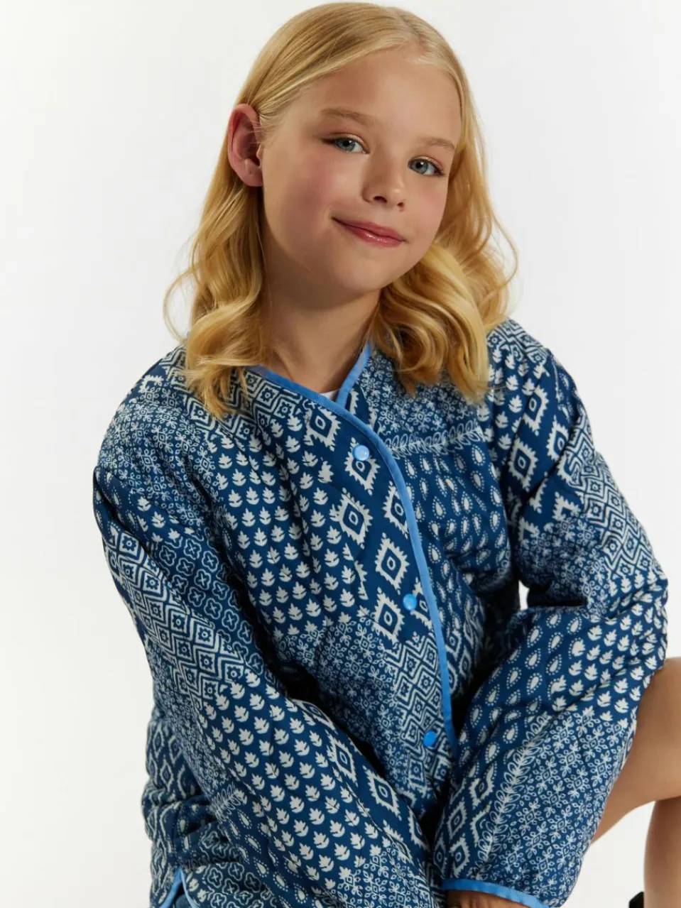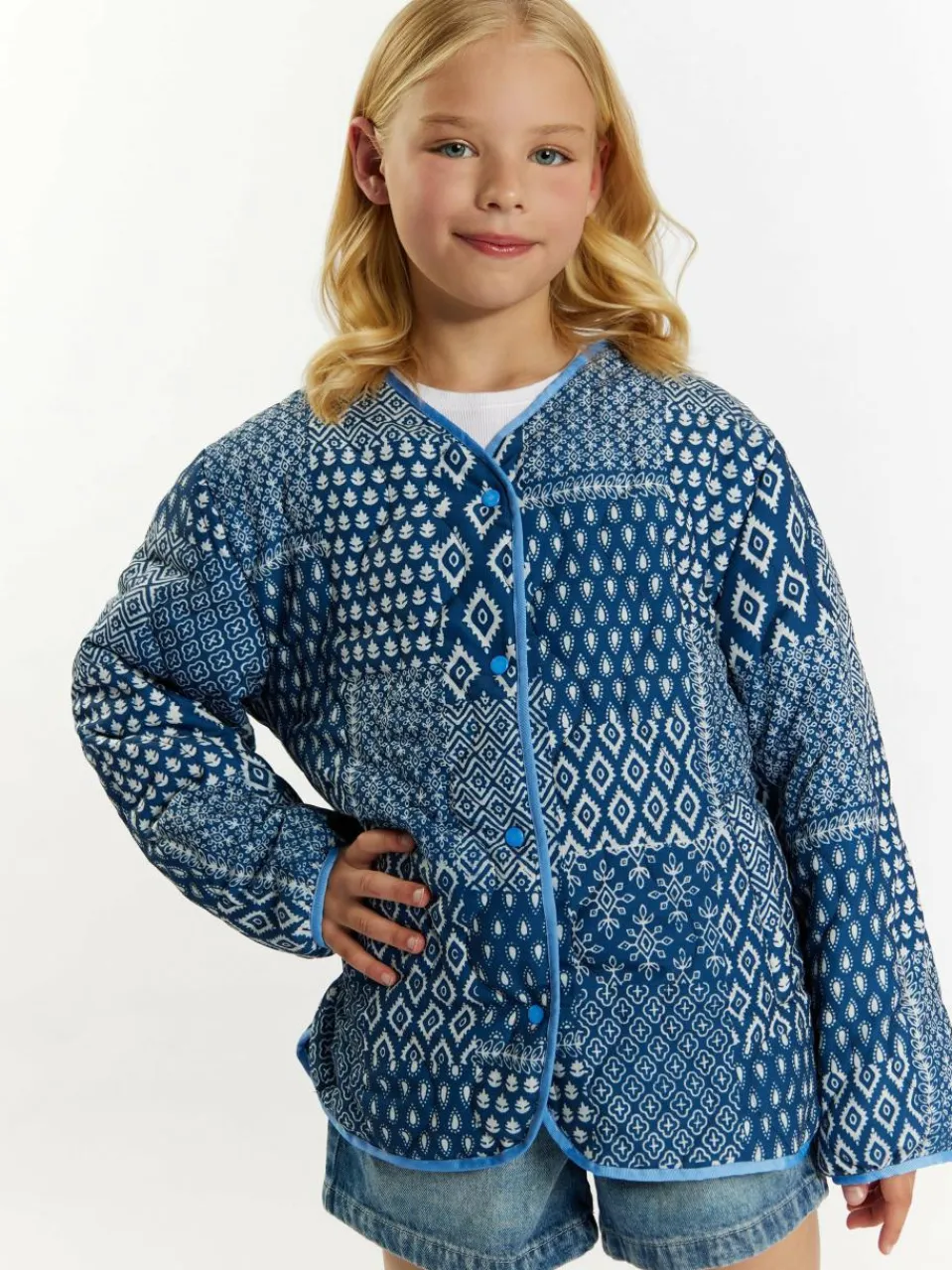 Die in Wellen gesteppte Kinderjacke von DreiMaster ist für Mädchen eine ideale Ergänzung der Sommergarderobe. Das hübsche, vielseitige Design aus einem Baumwollgemisch zeigt ein harmonisches Patchworkmuster mit kontrastierendem Innenfutter und Druckknöpfen.