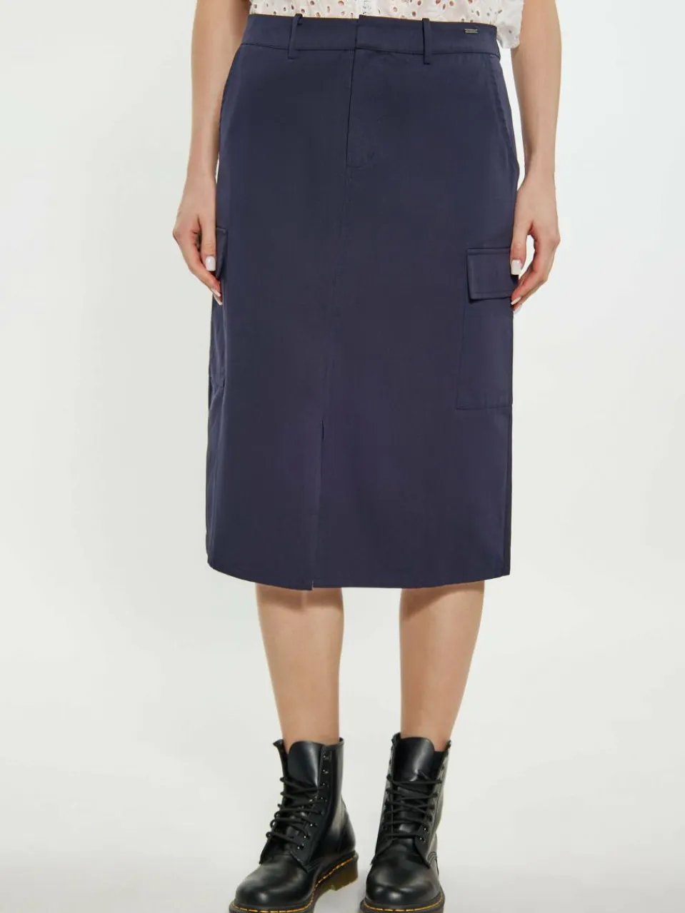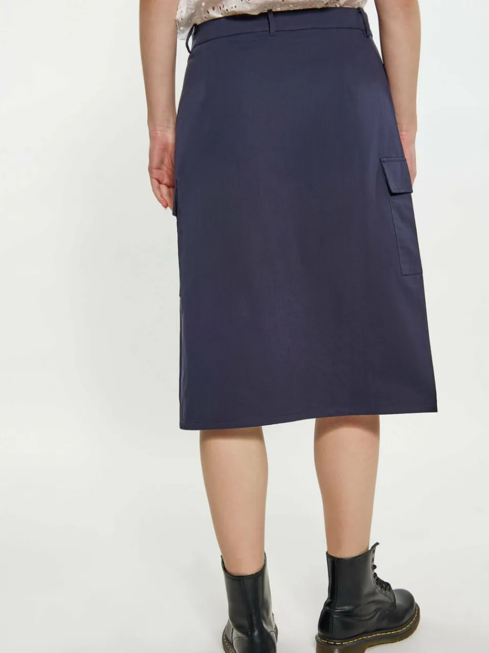 Accentuate your wardrobe with this cotton skirt with a back slit for freedom of movement. There are two functional patch cargo pockets on the front, which add utility to the minimalist design. The skirt will be a great element of a summer styling.