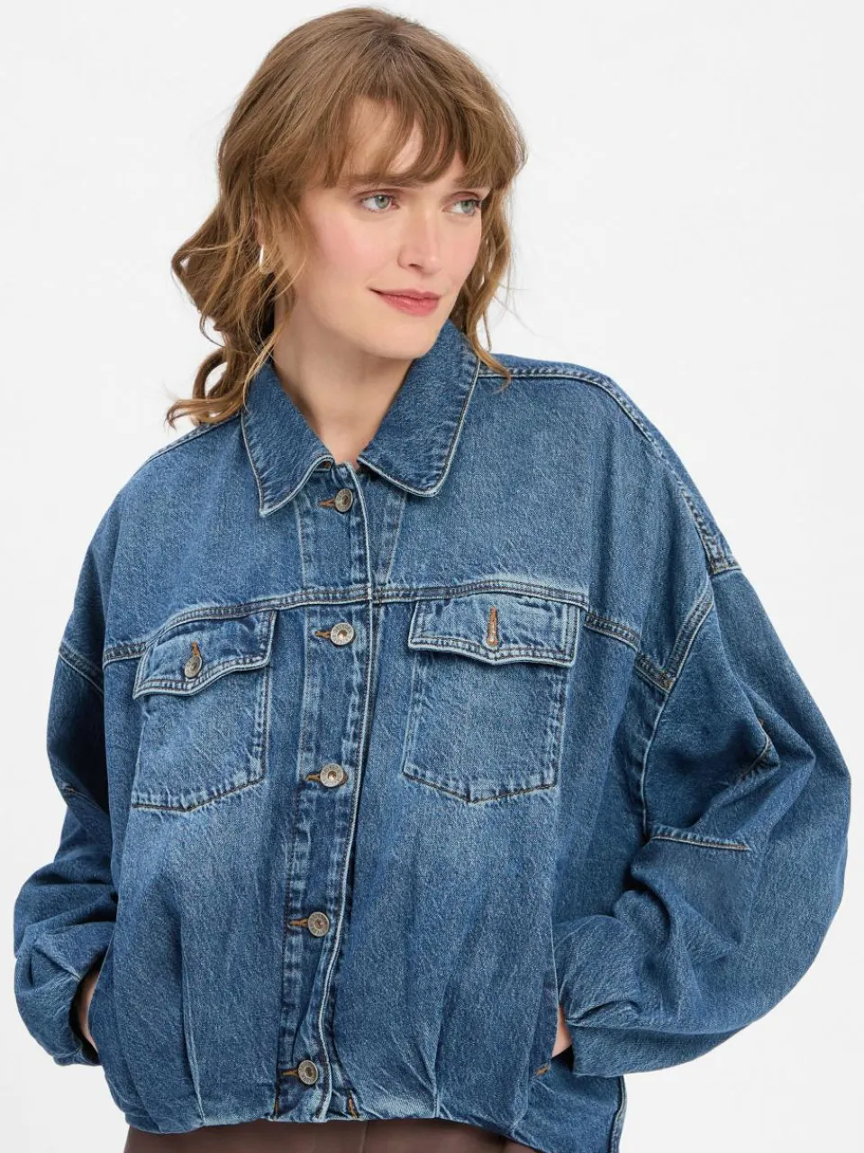 Raffungen und doppellagiger Saum verleihen der Cropped-Jeansjacke Blaxton von Drykorn im Blouson-Stil ihren modernen Look – der Baumwoll-Lyocell-Mix bietet dazu lässigen Komfort mit Stil.