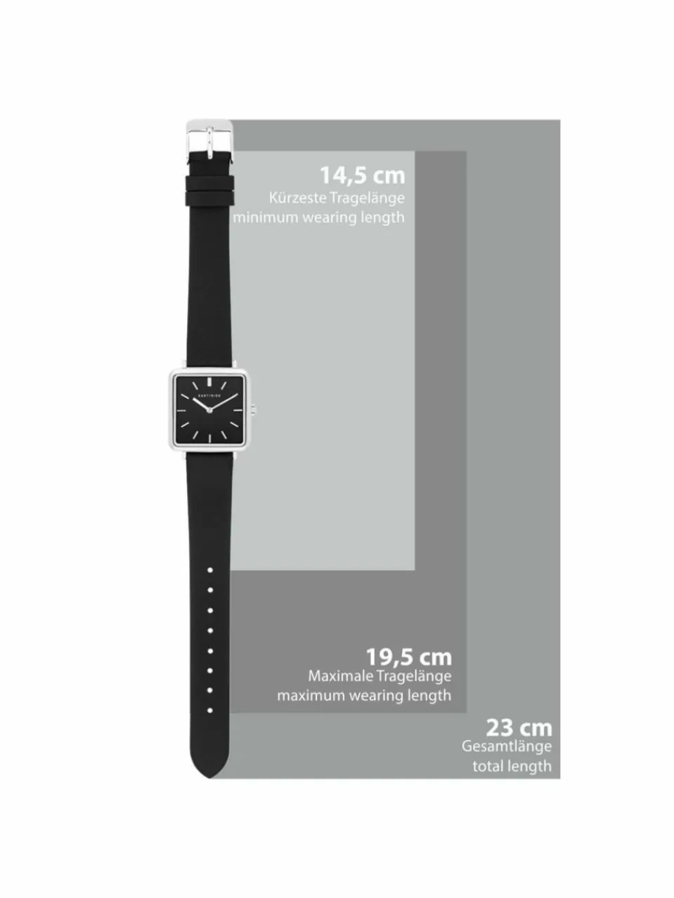 Sie lieben einen urbanen Lebensstil? Dann werden Sie sich in diese Damen-Armbanduhr des Uhrenlabels Eastside verlieben. In Anlehnung an das Flair des gleichnamigen New Yorkes Stadtviertels setzt sie auf stylische Noblesse. Ins Auge fällt das markante eckige Zifferblatt, das von einer kühlen silberfarbenen Lünette umrahmt wird. Bewusst schlicht zeigt sich das Zifferblatt-Design mit Strichindices und filigranen Stabzeigern.