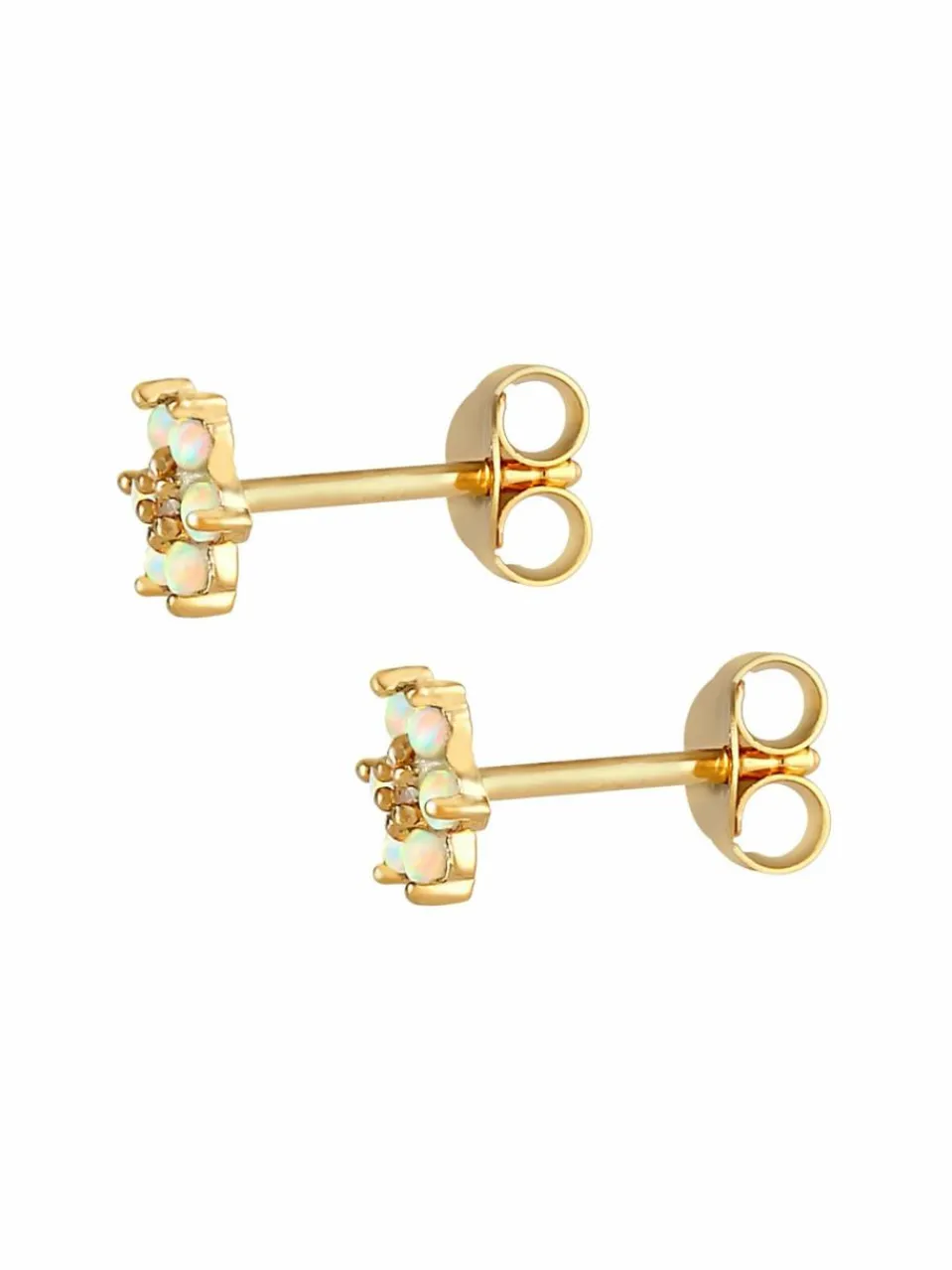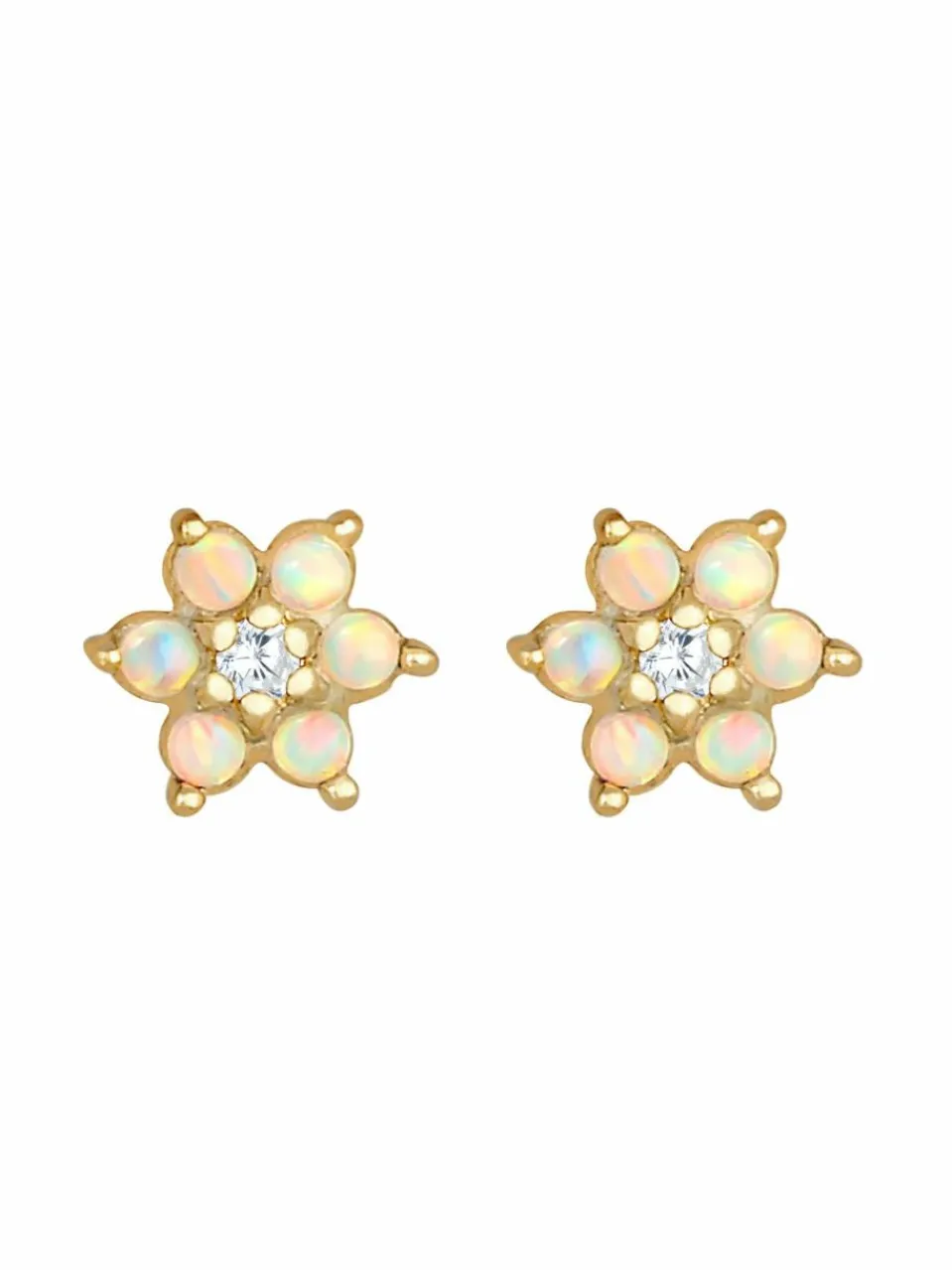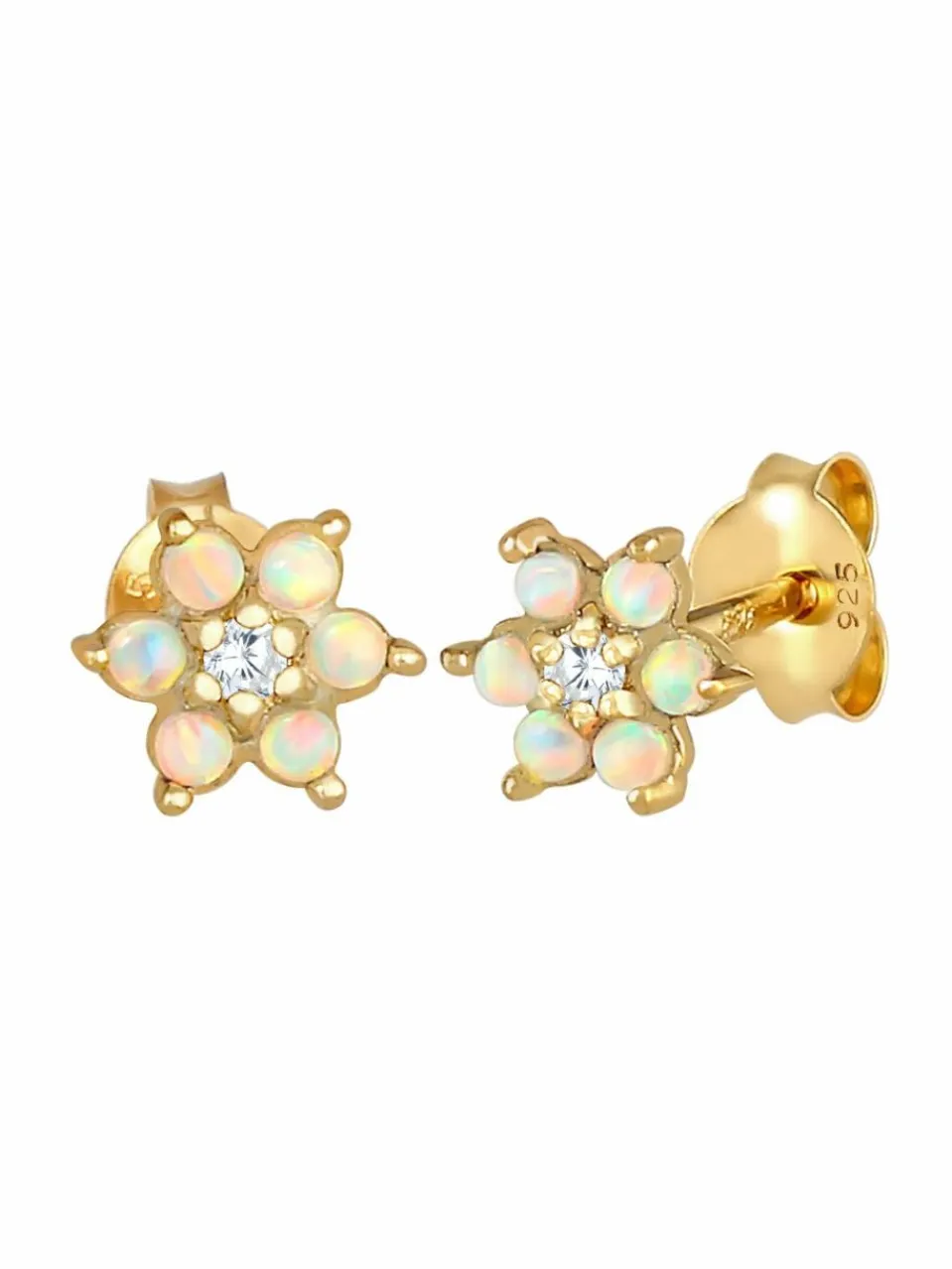 Diese eleganten Ohrringe, stahlen im beliebten Blüten Look. Die Blütenblätter sind mit synthetischen Opal Edelsteinen verziert und in der Mitte funkelt ein Zirkonia. Dieser atemberaubende Ohrschmuck im Blumen Design, unterstreicht perfekt jedes Mädchen Outfit.Zum Schutz der unserer Kleinsten empfehlen wir das Tragen von Schmuckstücken für Kinder unter 3 Jahren nur unter Aufsicht von Erwachsenen, da kleine Teile unter Umständen verschluckt werden könnten.
